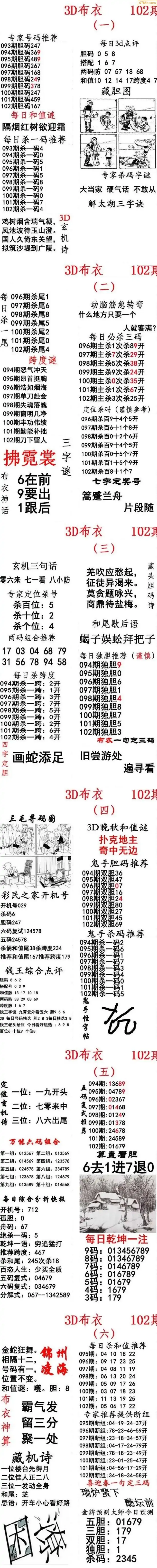 福彩102期3d真精华布衣+布衣早报(转载)