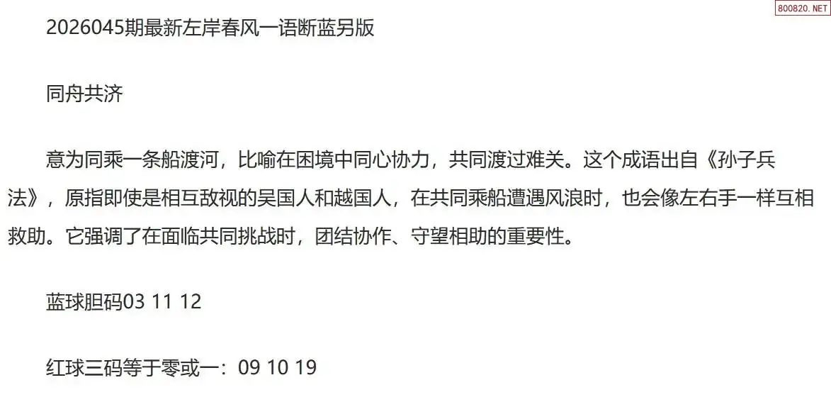 左岸春风另版双色球26年045期一语断蓝