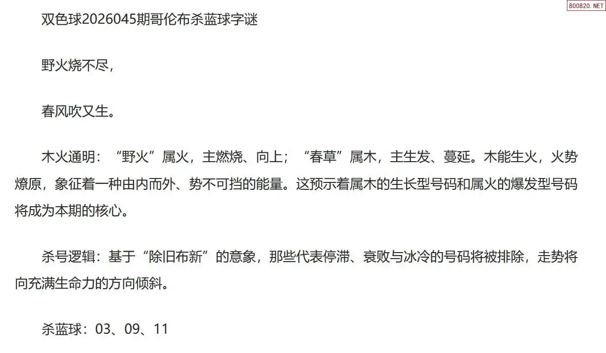哥伦布双色球26年045期一句杀蓝球字迷