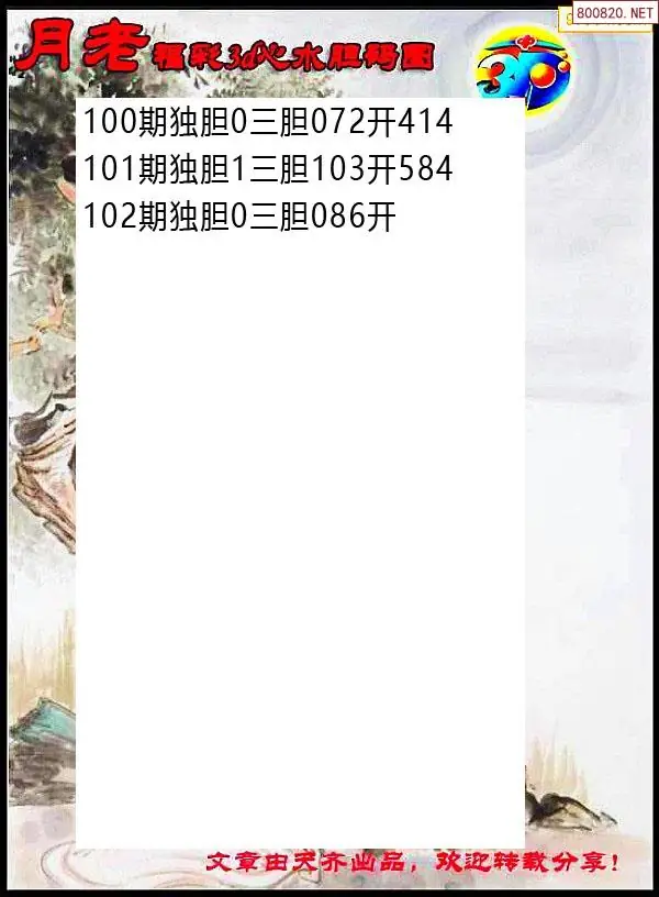 2026102期彩彩网3d原创图迷搜集(天中整理)