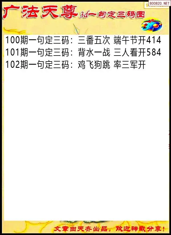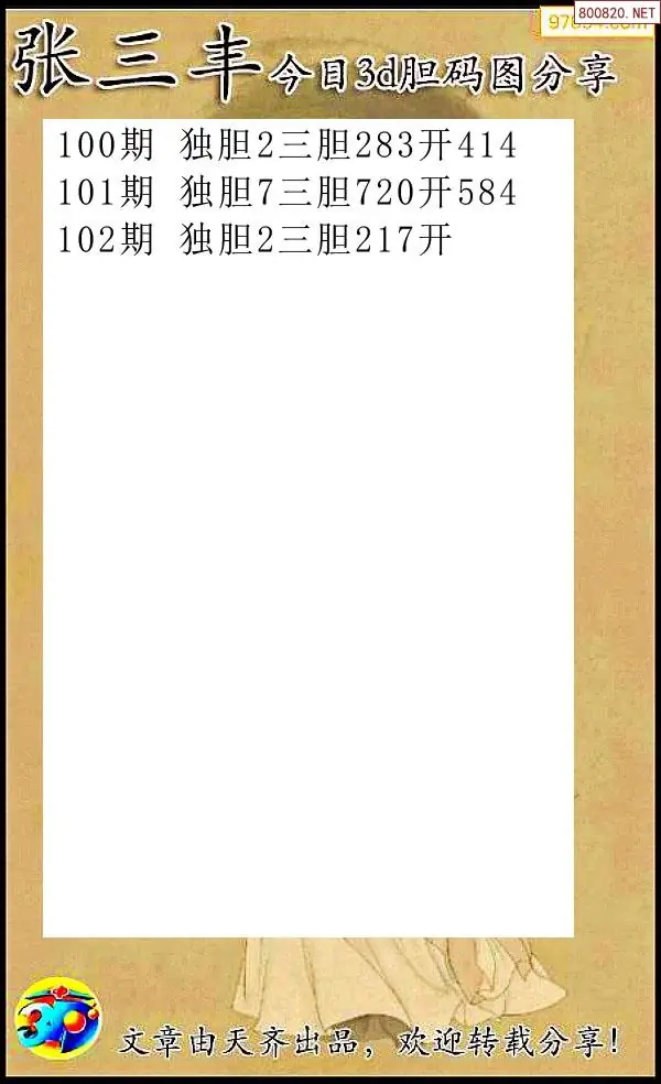 天齐网3d26年102期胆码图 胆:07