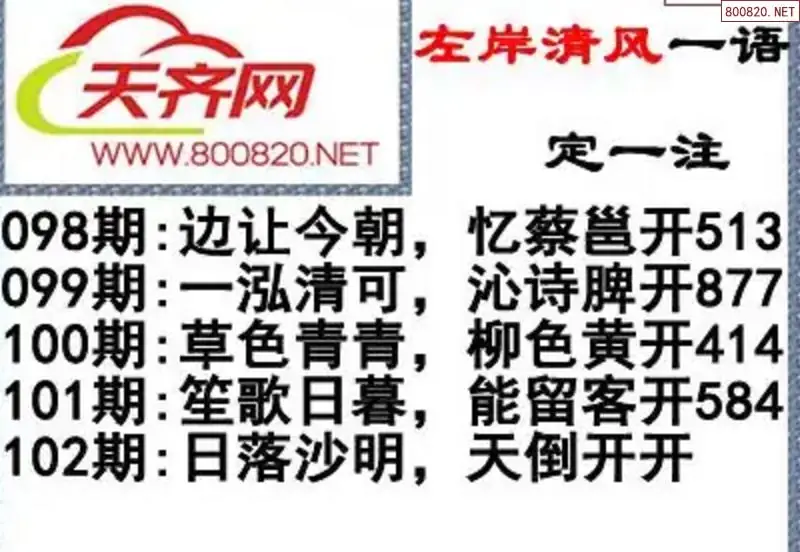 福彩3d左岸清风26年102期一语定一注