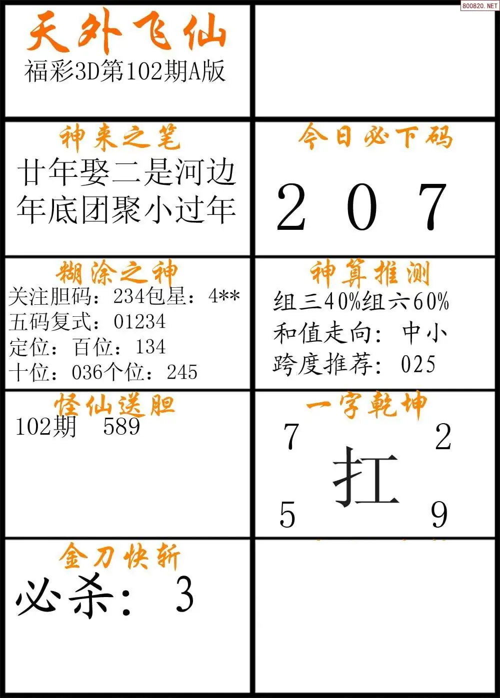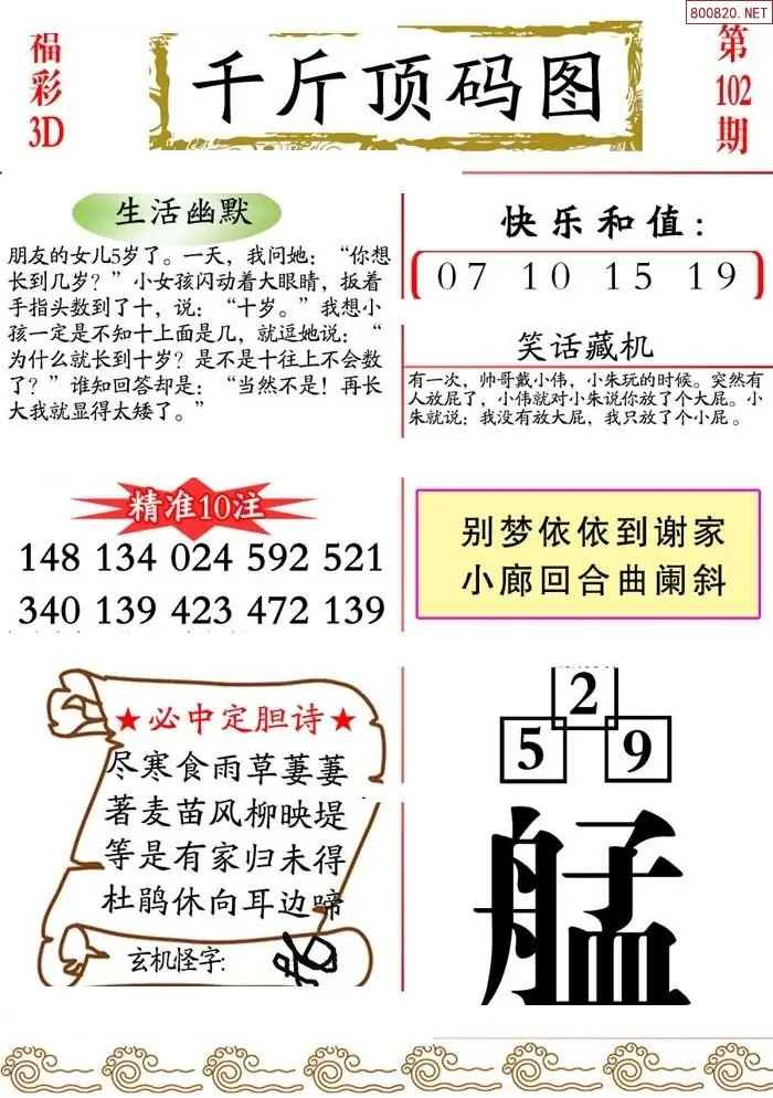 (3)2026102期3D预测总汇全图_福彩3d图谜字谜总汇