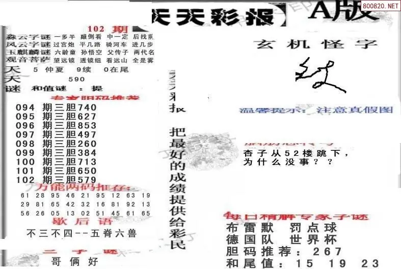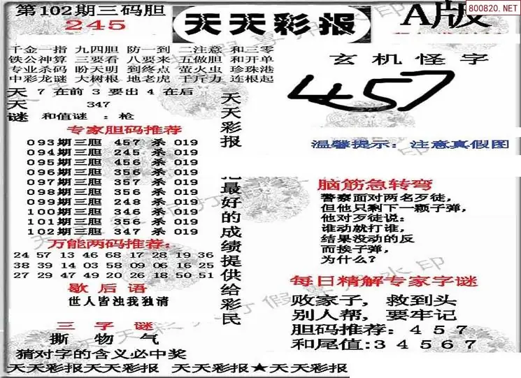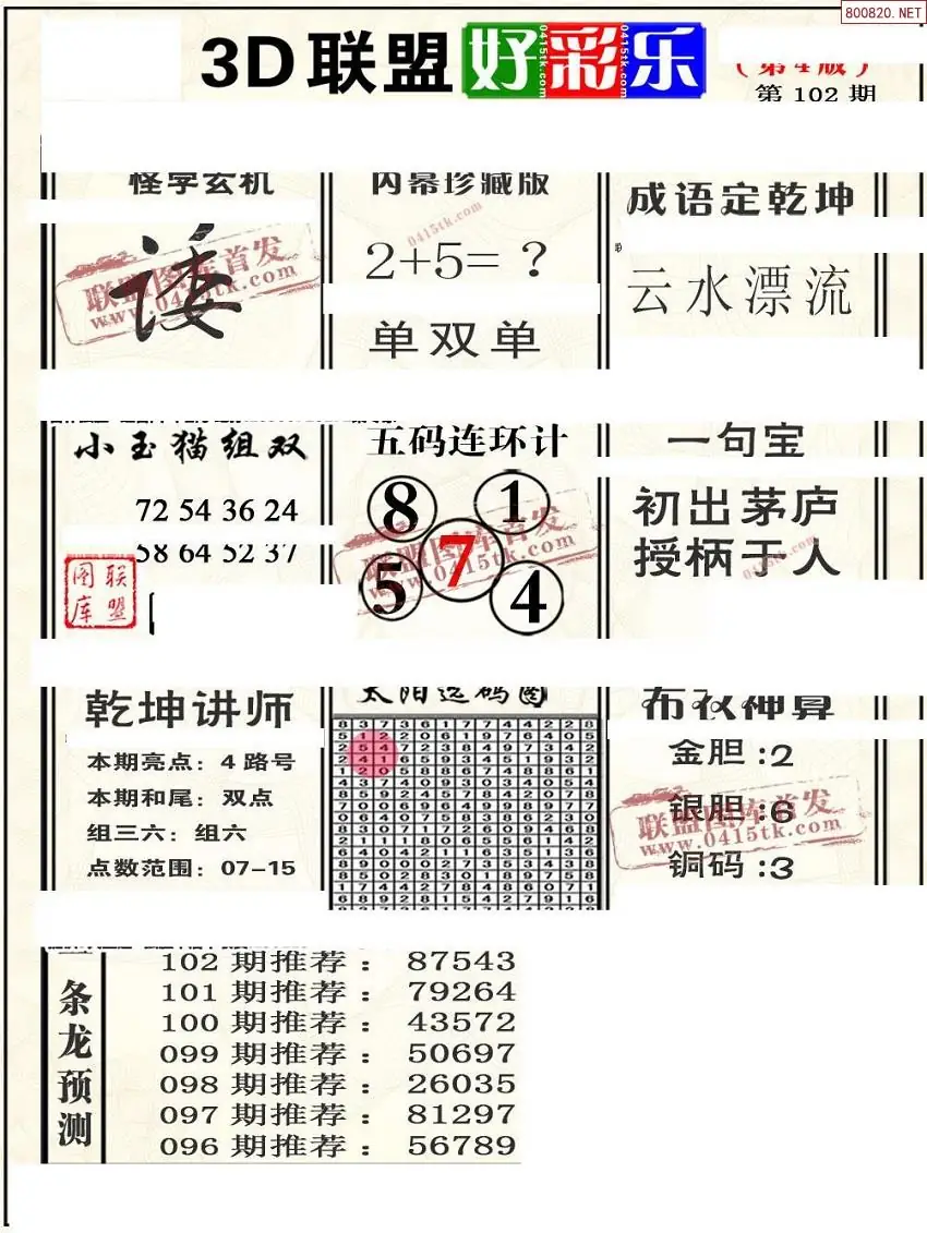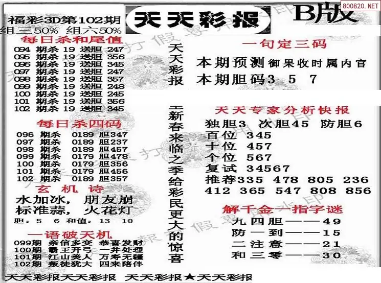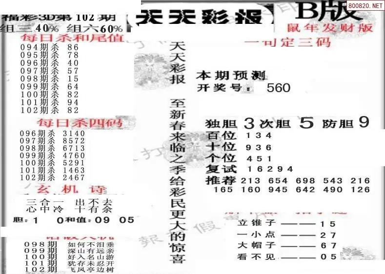 (8)26年102期今日3d各类彩报汇总