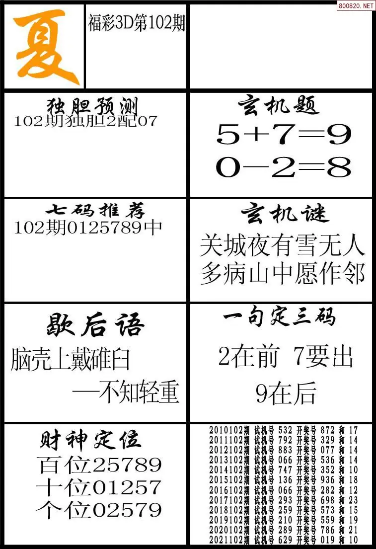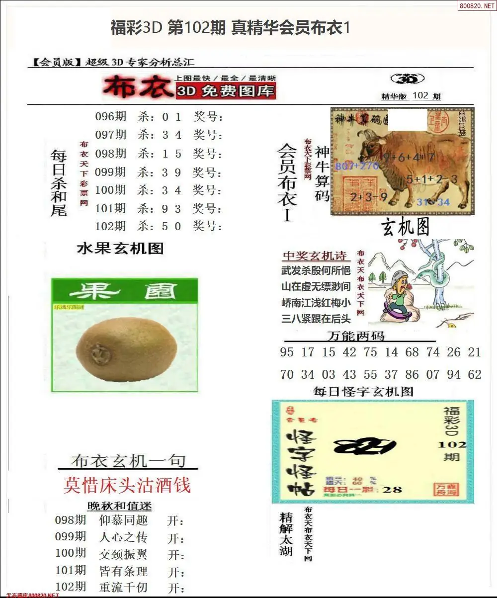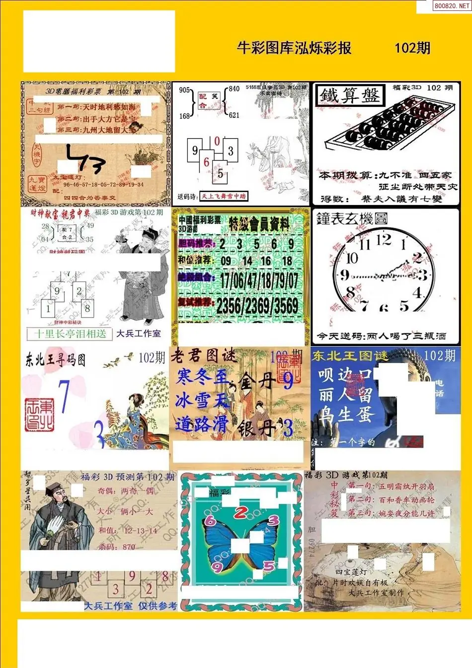 (2)26年102期本期3d图迷汇总_福彩3D图谜总汇图