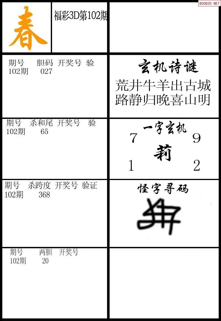 (5)26年102期福彩字谜图谜总汇