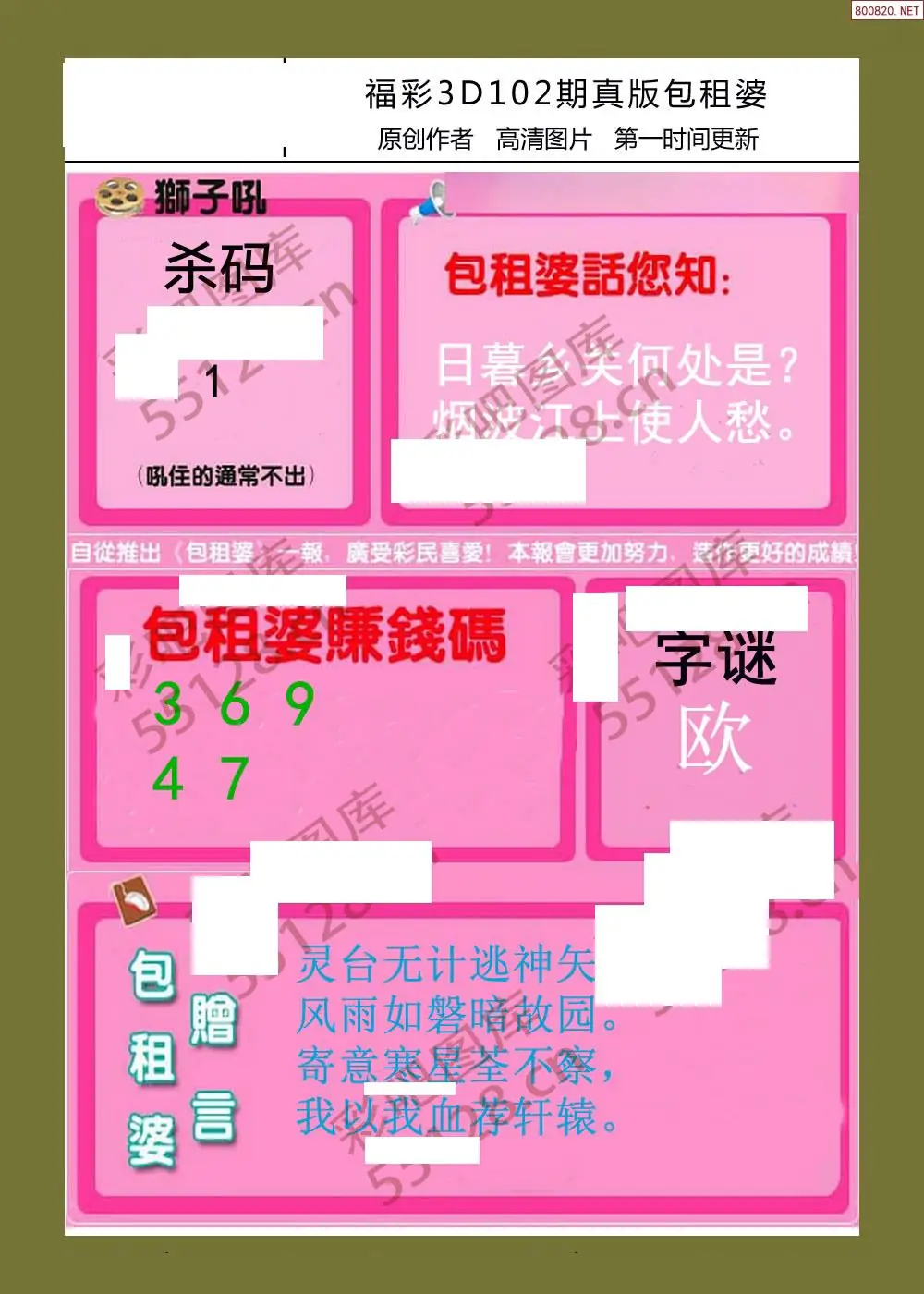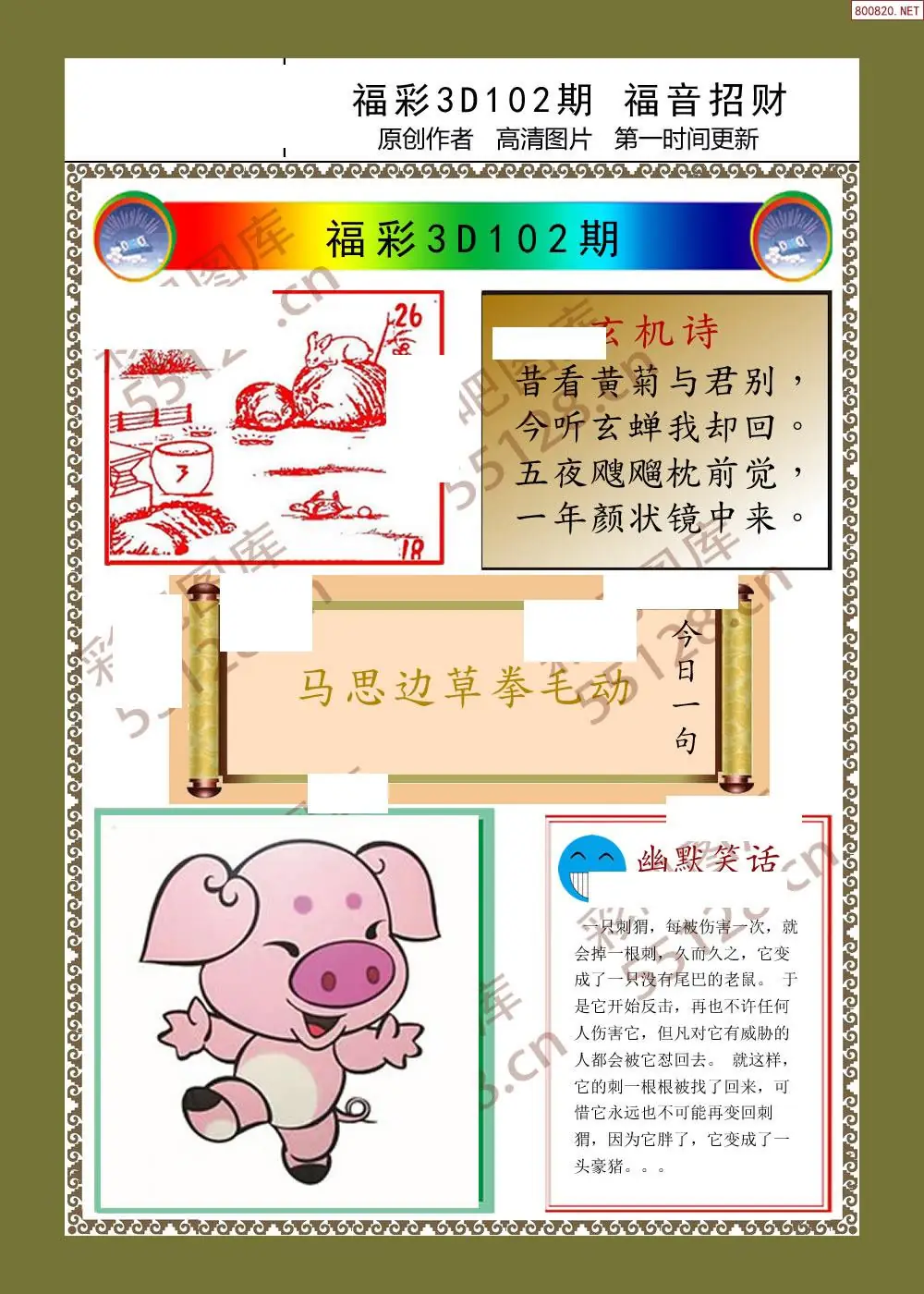 (2)26年102期本期3d图迷汇总_福彩3D图谜总汇图