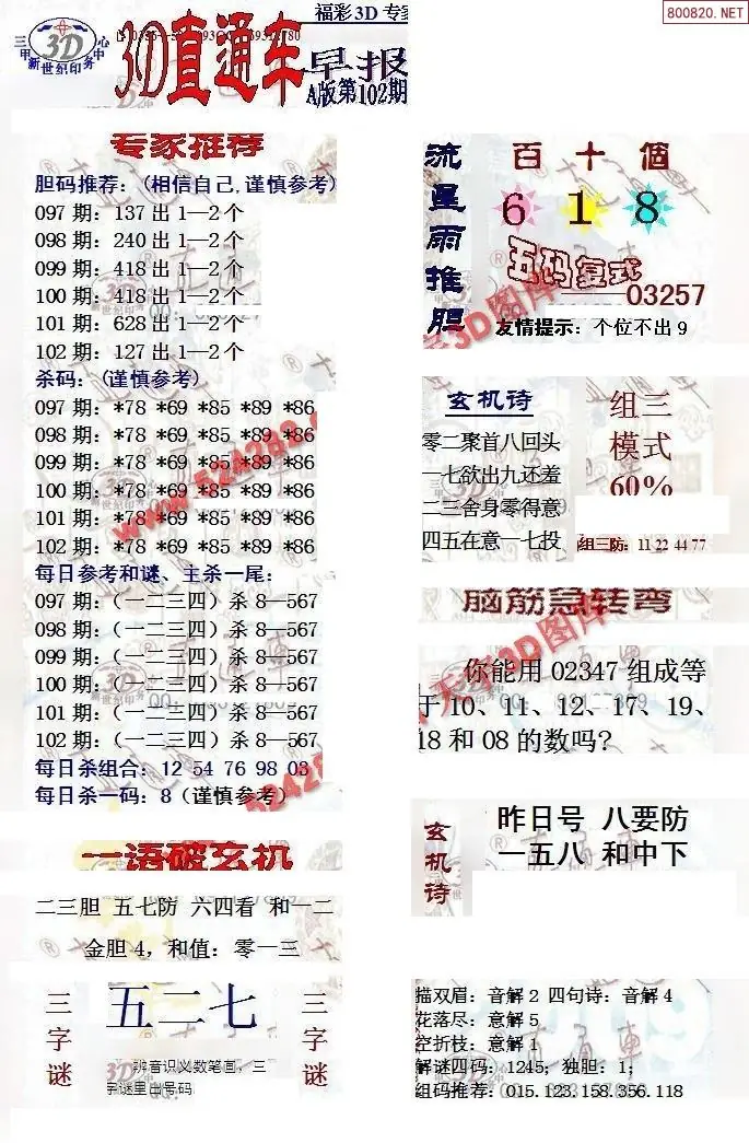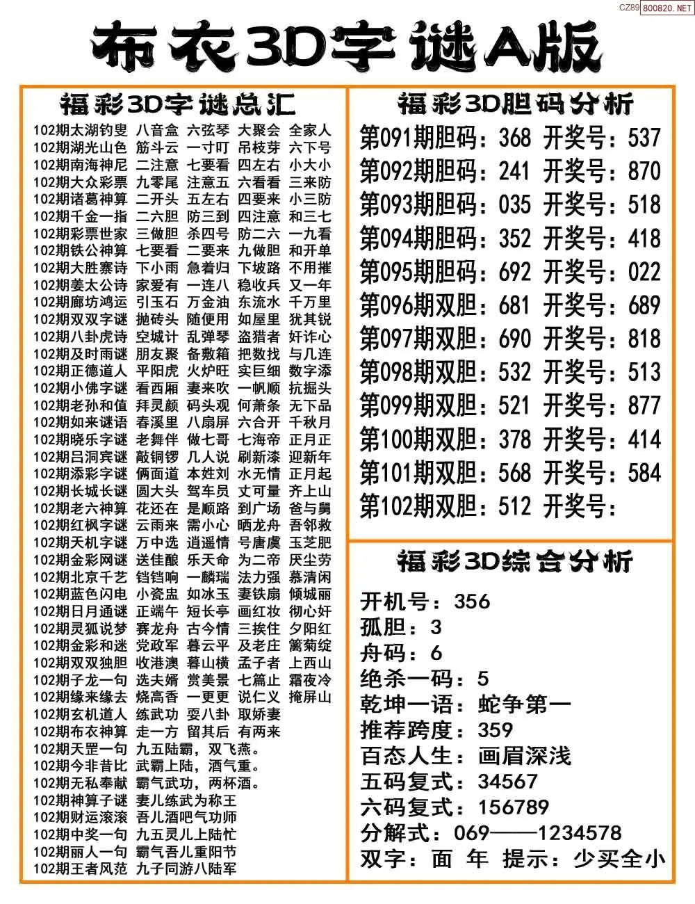 (3)2026102期3D预测总汇全图_福彩3d图谜字谜总汇