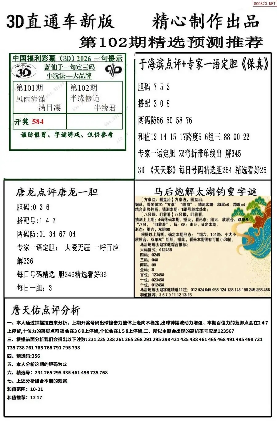 (2)26年102期本期3d图迷汇总_福彩3D图谜总汇图