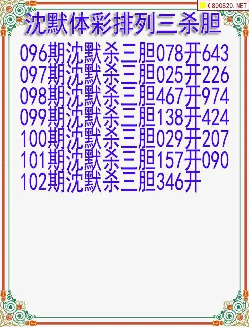 26年102期体彩排列三沈默杀胆图迷