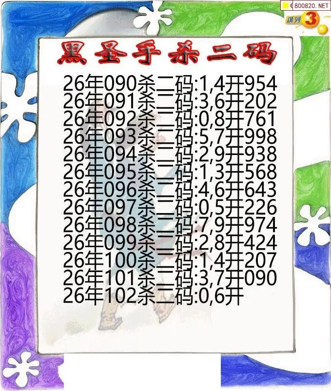 26年102期黑圣手排3杀二码图迷