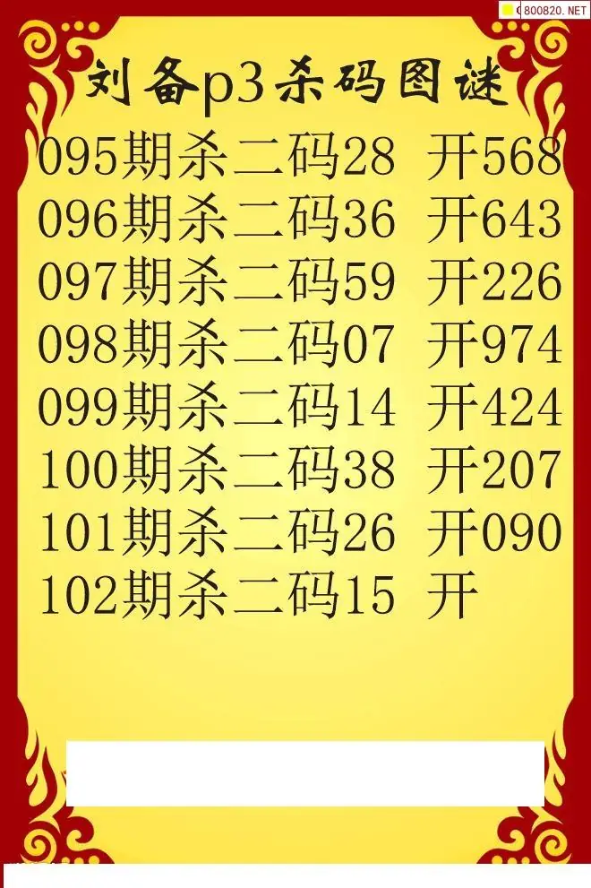 26年102期刘备p3杀码图谜
