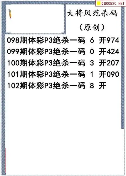 26年102期大将风范p3杀码体彩图谜