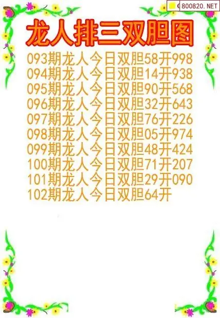26102期龙人排列3双胆图
