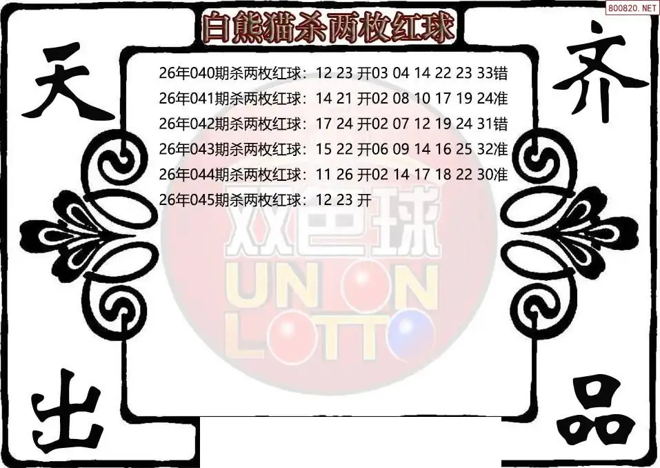 26年双色球045期白熊猫杀两枚红球图谜