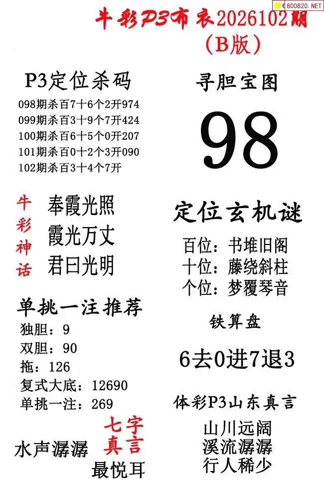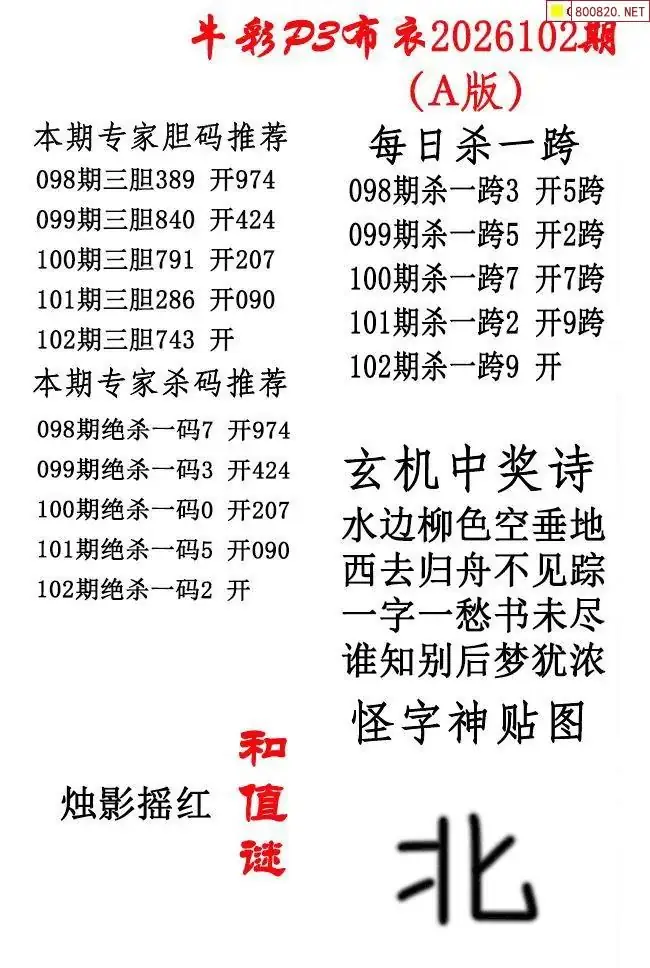 2026年102期北盟天机图+p3仙机图谜 _排三图谜专区