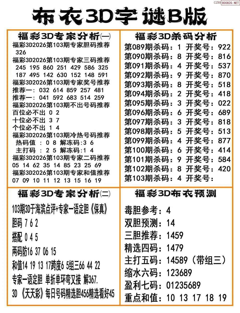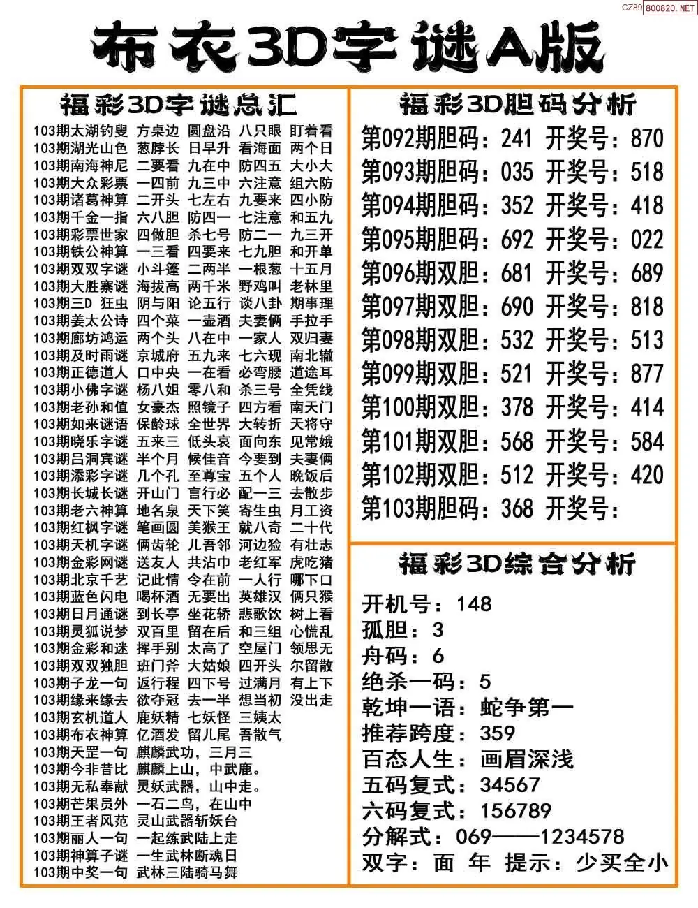 福彩26103期布衣3d字谜ab
