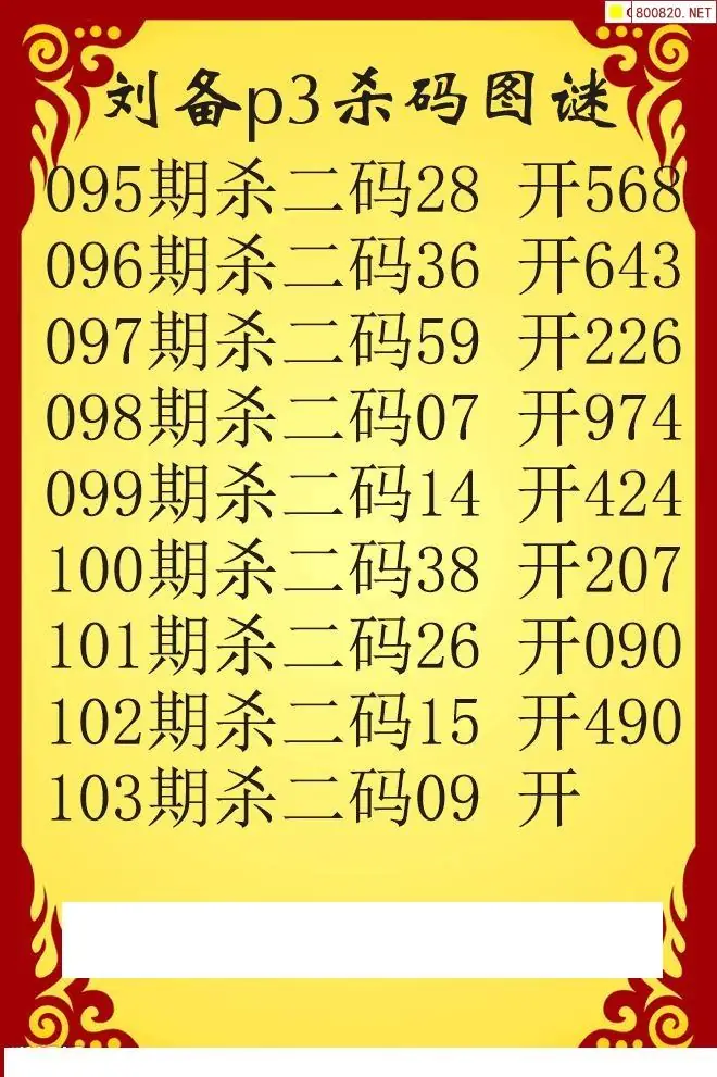 26年103期刘备p3杀码图谜