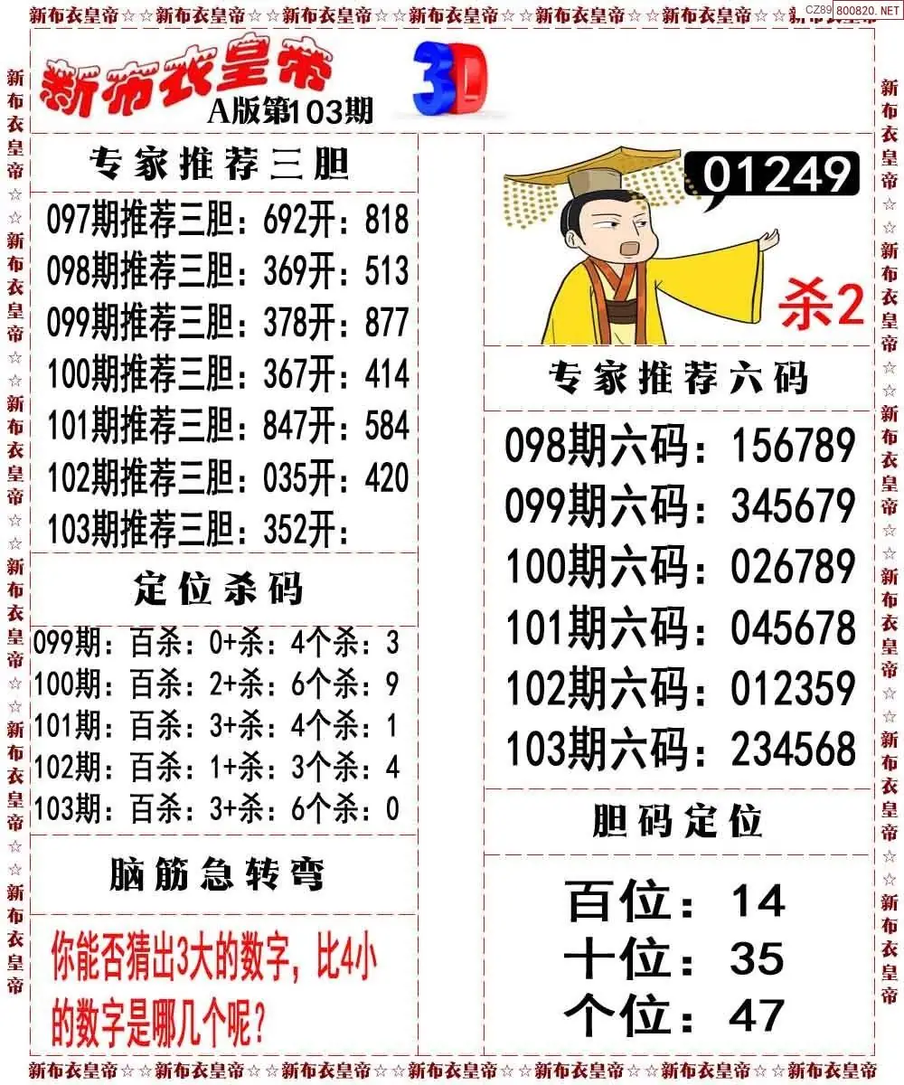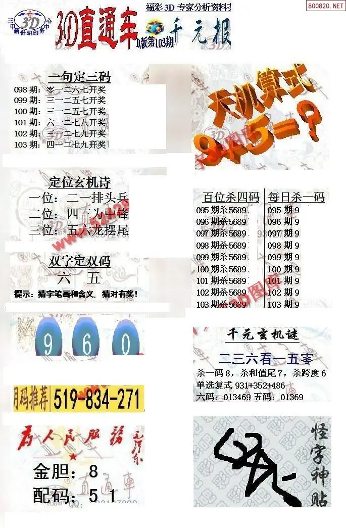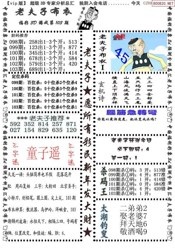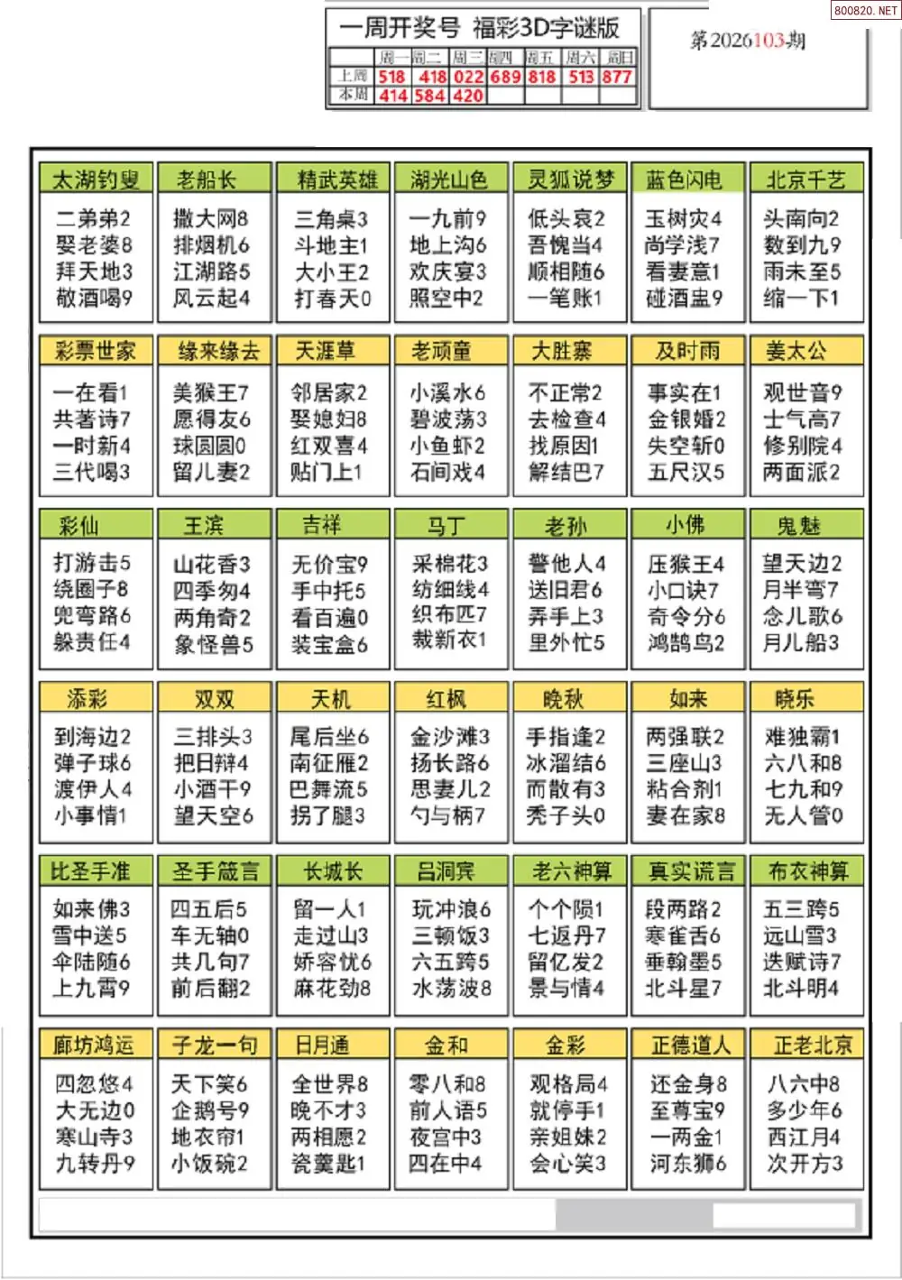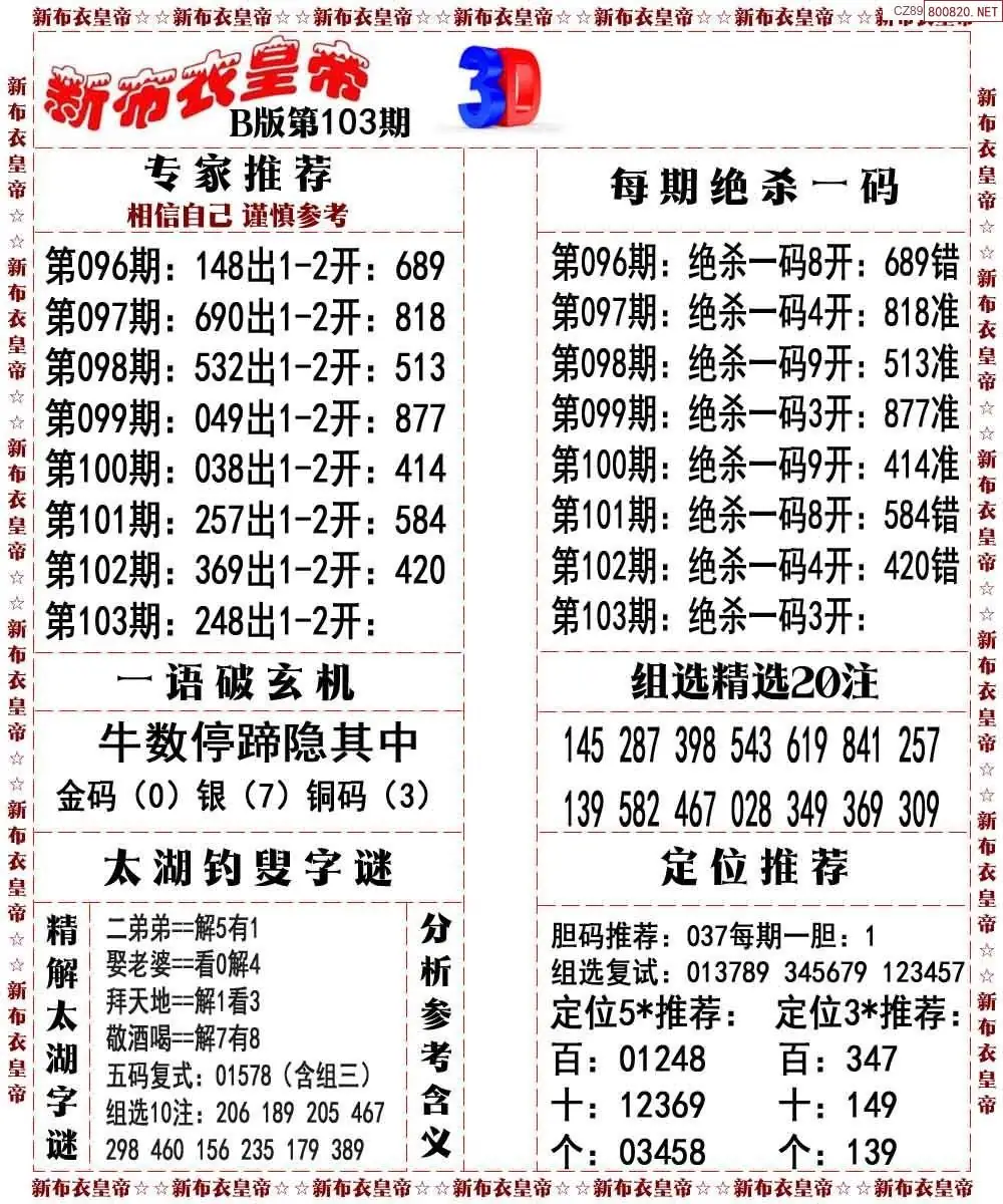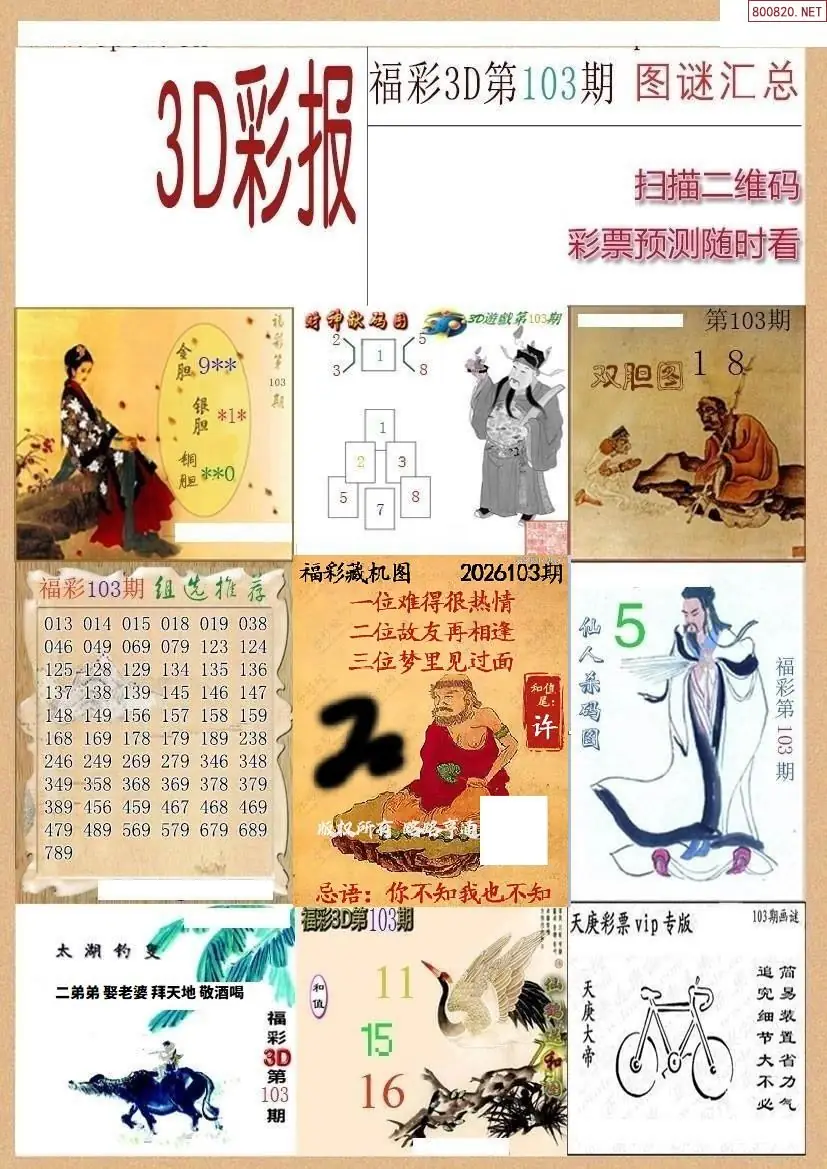 (3)2026103期3D预测总汇全图_福彩3d图谜字谜总汇