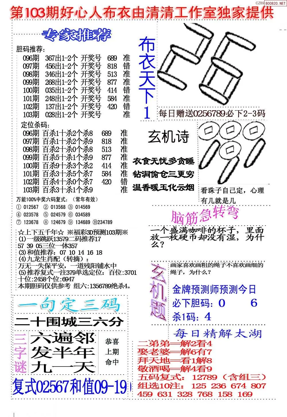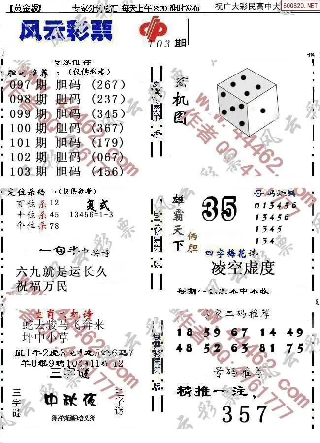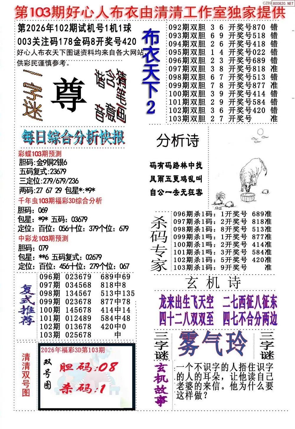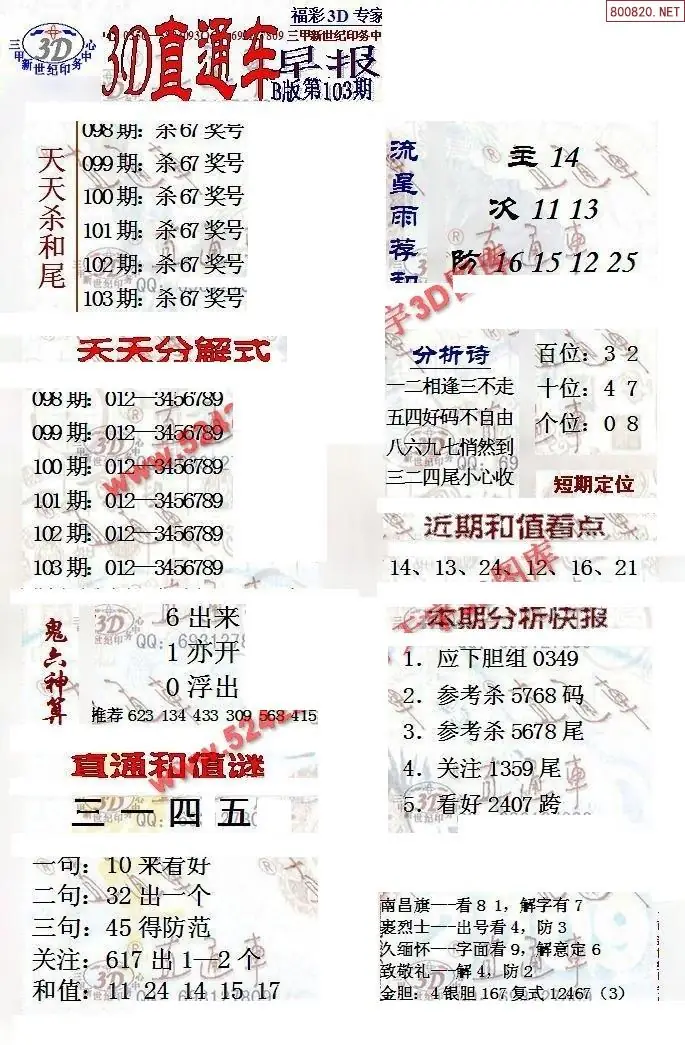 (8)26年103期今日3d各类彩报汇总
