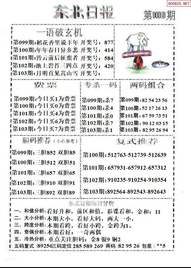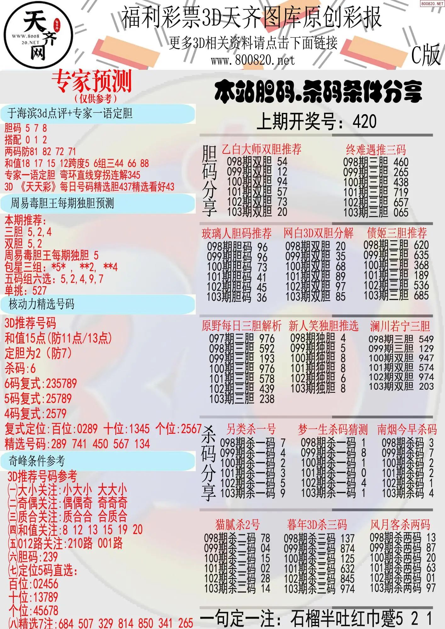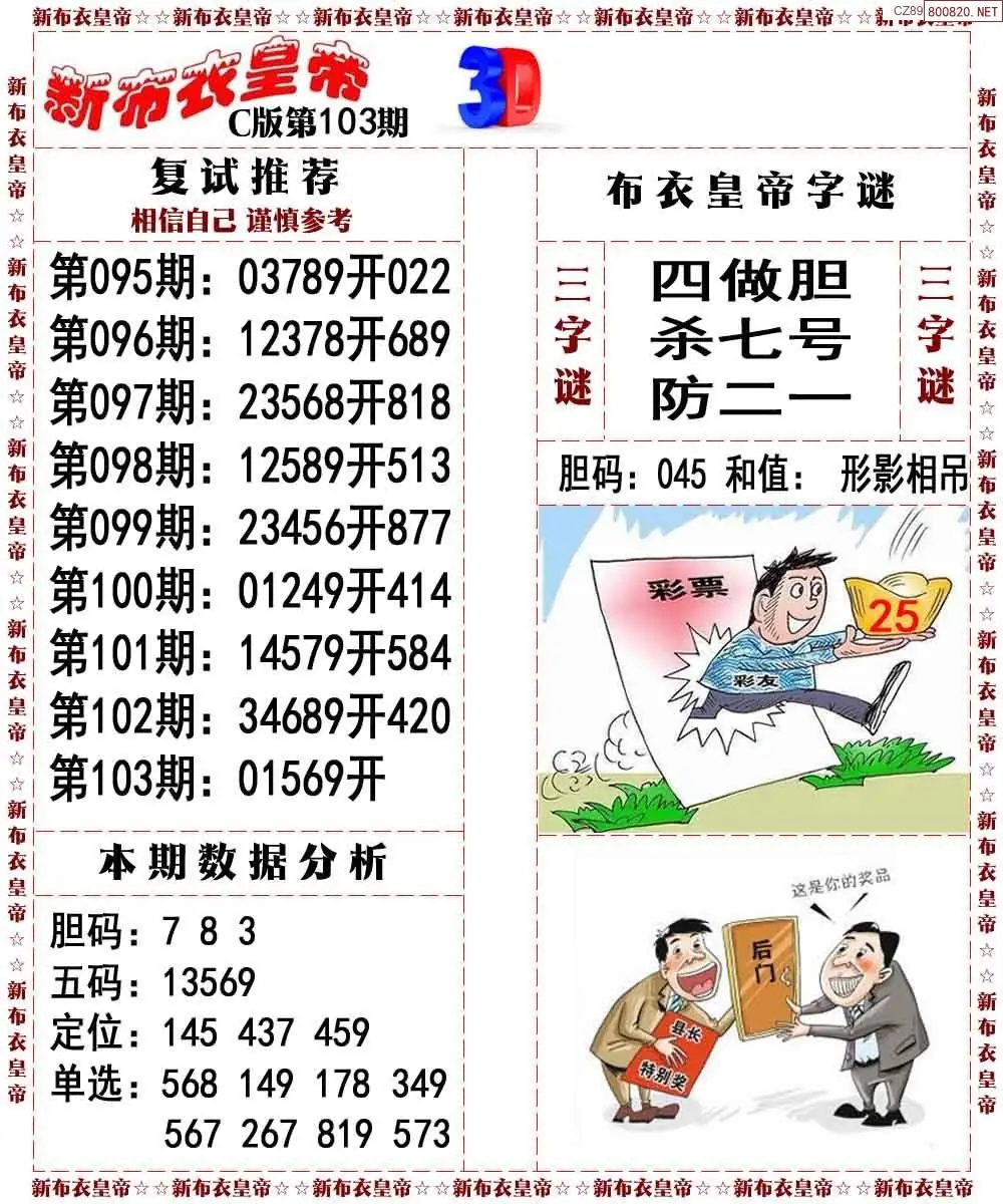 (8)26年103期今日3d各类彩报汇总
