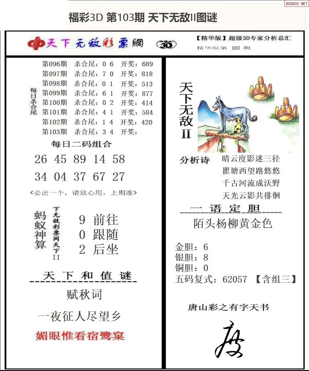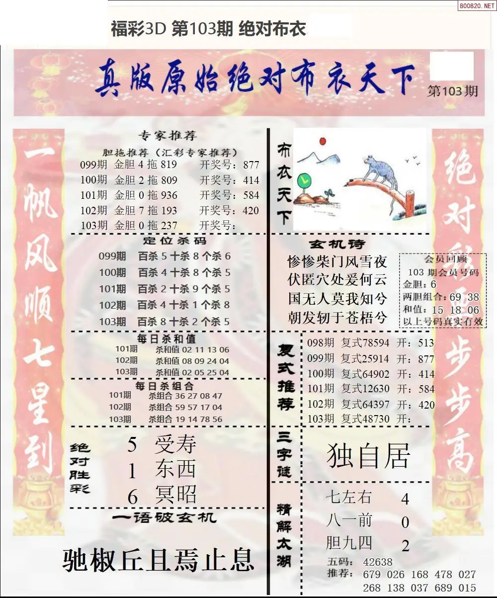 (2)26年103期本期3d图迷汇总_福彩3D图谜总汇图