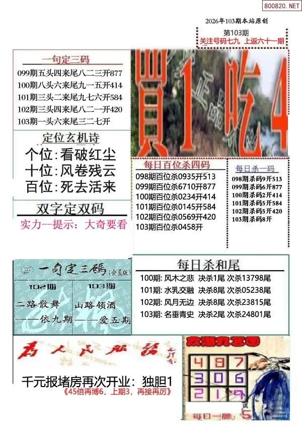 (1)26年103期今日3d图谜总汇