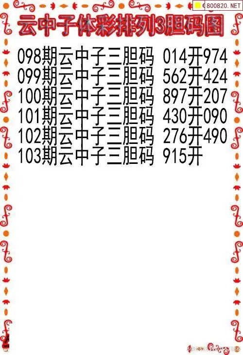 26103期云中子当天P3胆码图