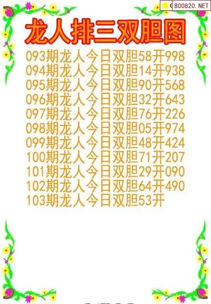 26103期龙人排列3双胆图