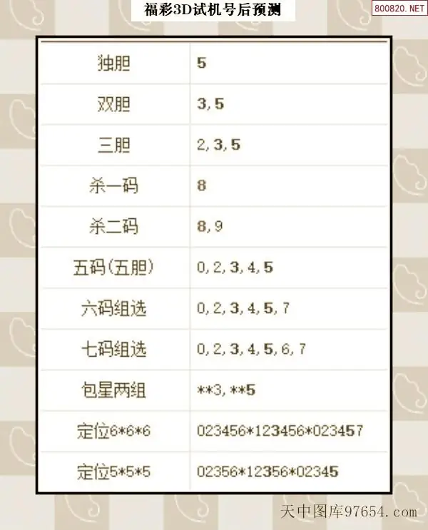 103期财神福彩3D试机号推荐