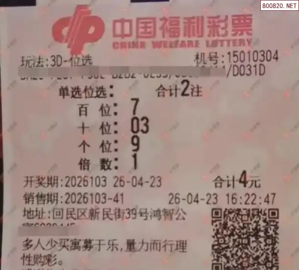 26103期福彩3d千禧试机号金码7