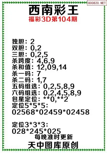 104期原创资料西南彩王当期预测