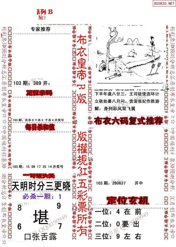 26103期3d新布衣皇帝早间四版