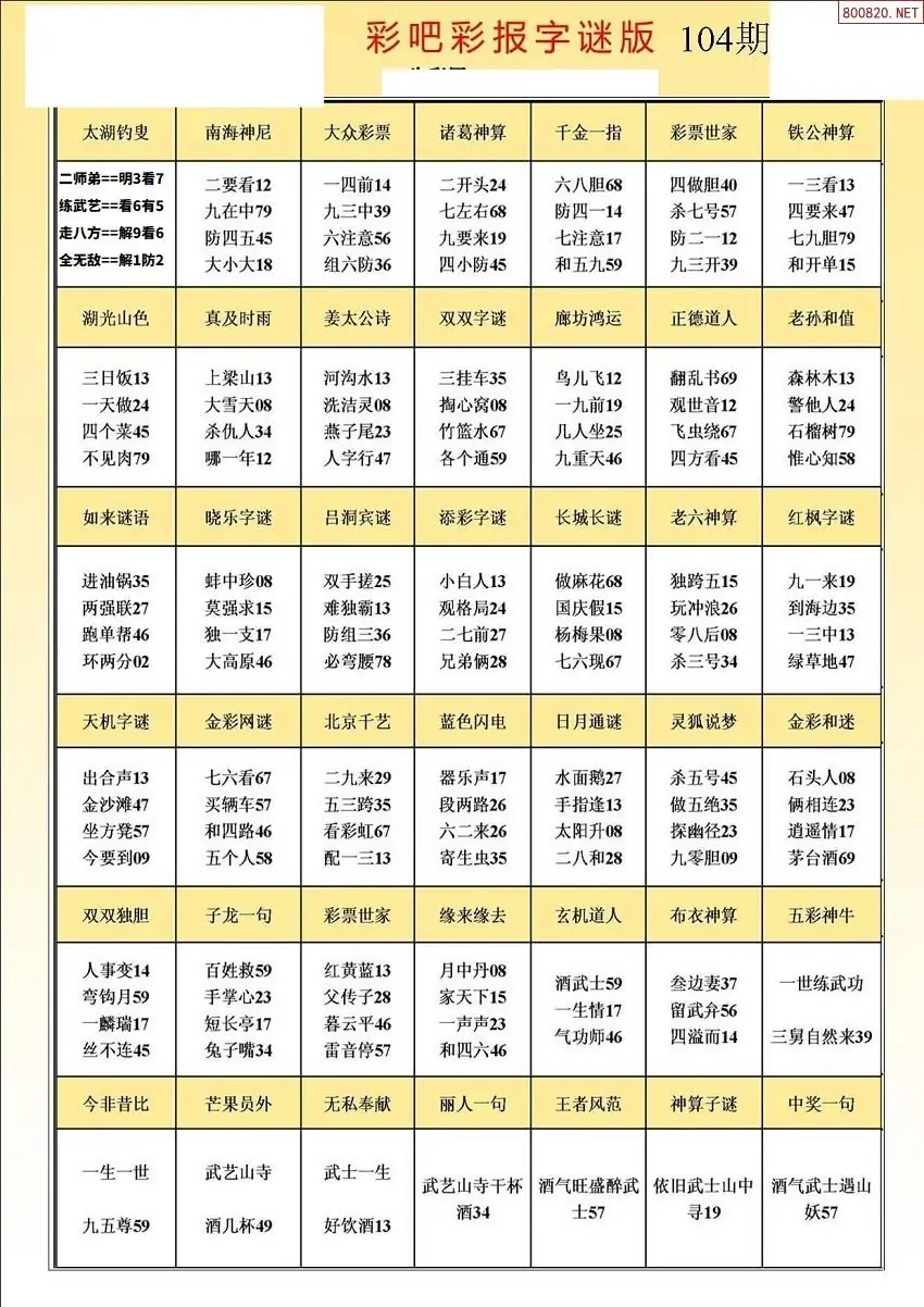 104期3D牛彩预测报+彩吧字谜报
