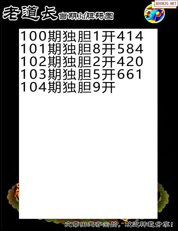 2026104期彩彩网3d原创图迷搜集(天中整理)