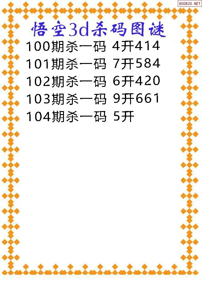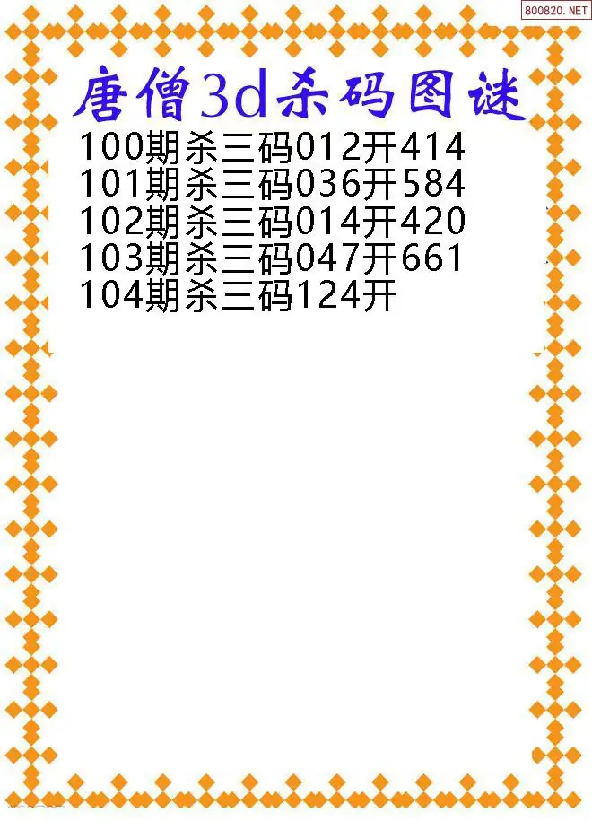 天齐网3d26年104期胆码图 胆:78
