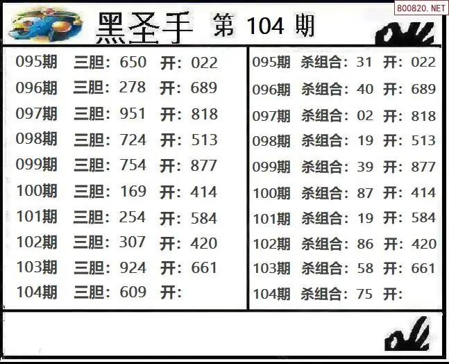 26104期黑圣手 _3d双胆下一