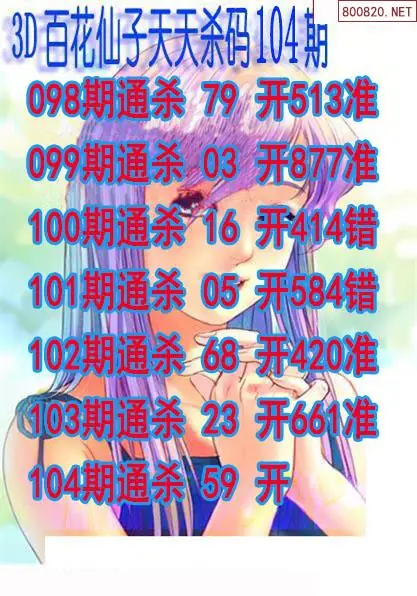 天齐网3d26年104期胆码图 胆:78