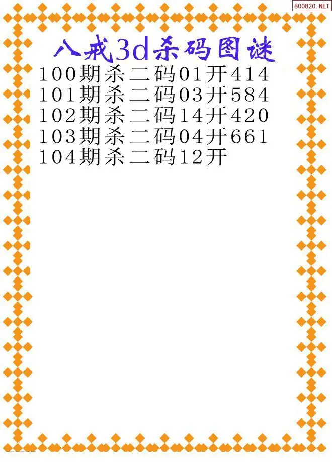 (3)2026104期3D预测总汇全图_福彩3d图谜字谜总汇