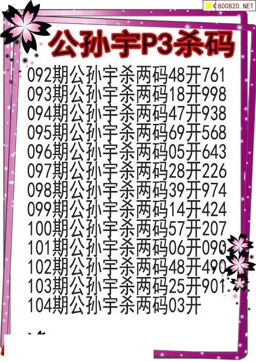 26年104期公孙梦本期P3杀码图