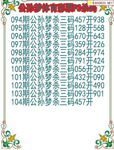 26年104期公孙梦本期P3杀码图