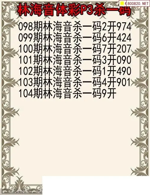 26年104期体彩P三林海音杀码图