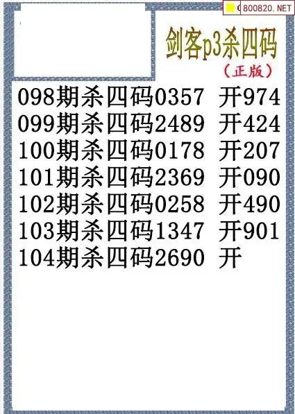 26年104期排三剑客杀码图谜