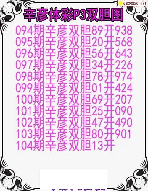 26104期体彩排列三辛彦双胆图