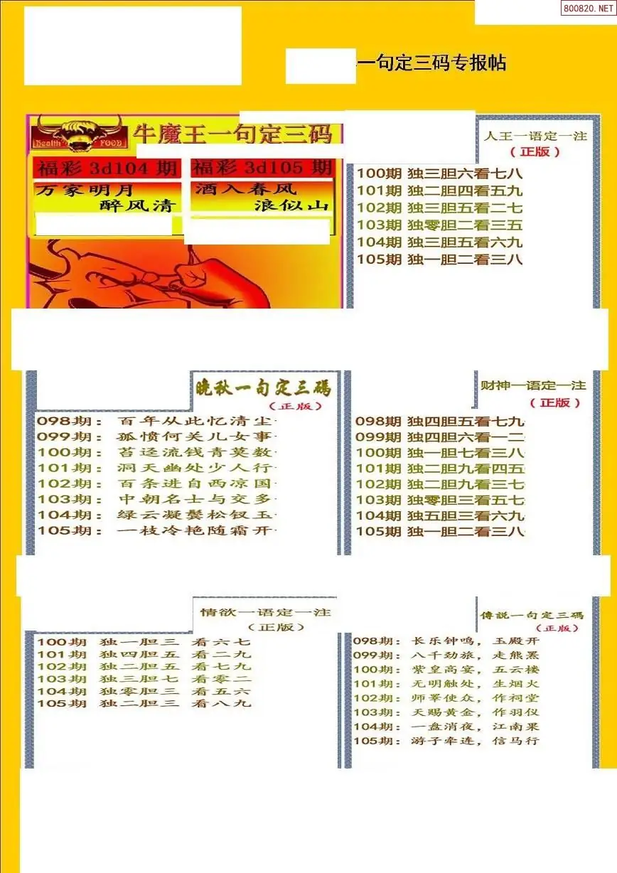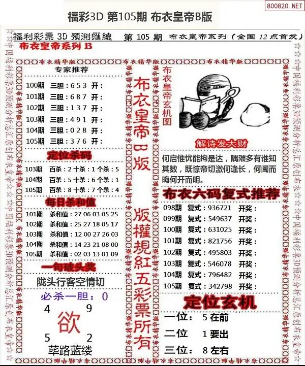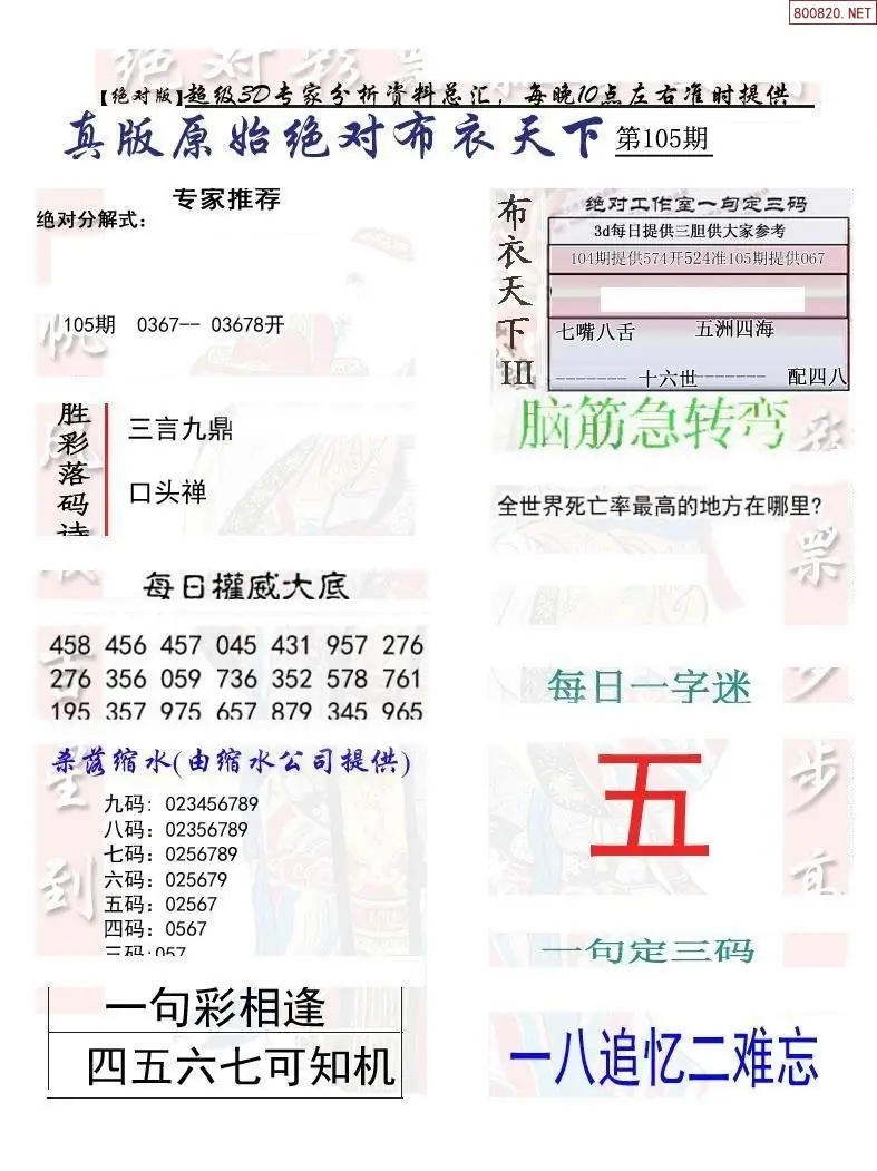 (2)26年105期本期3d图迷汇总_福彩3D图谜总汇图