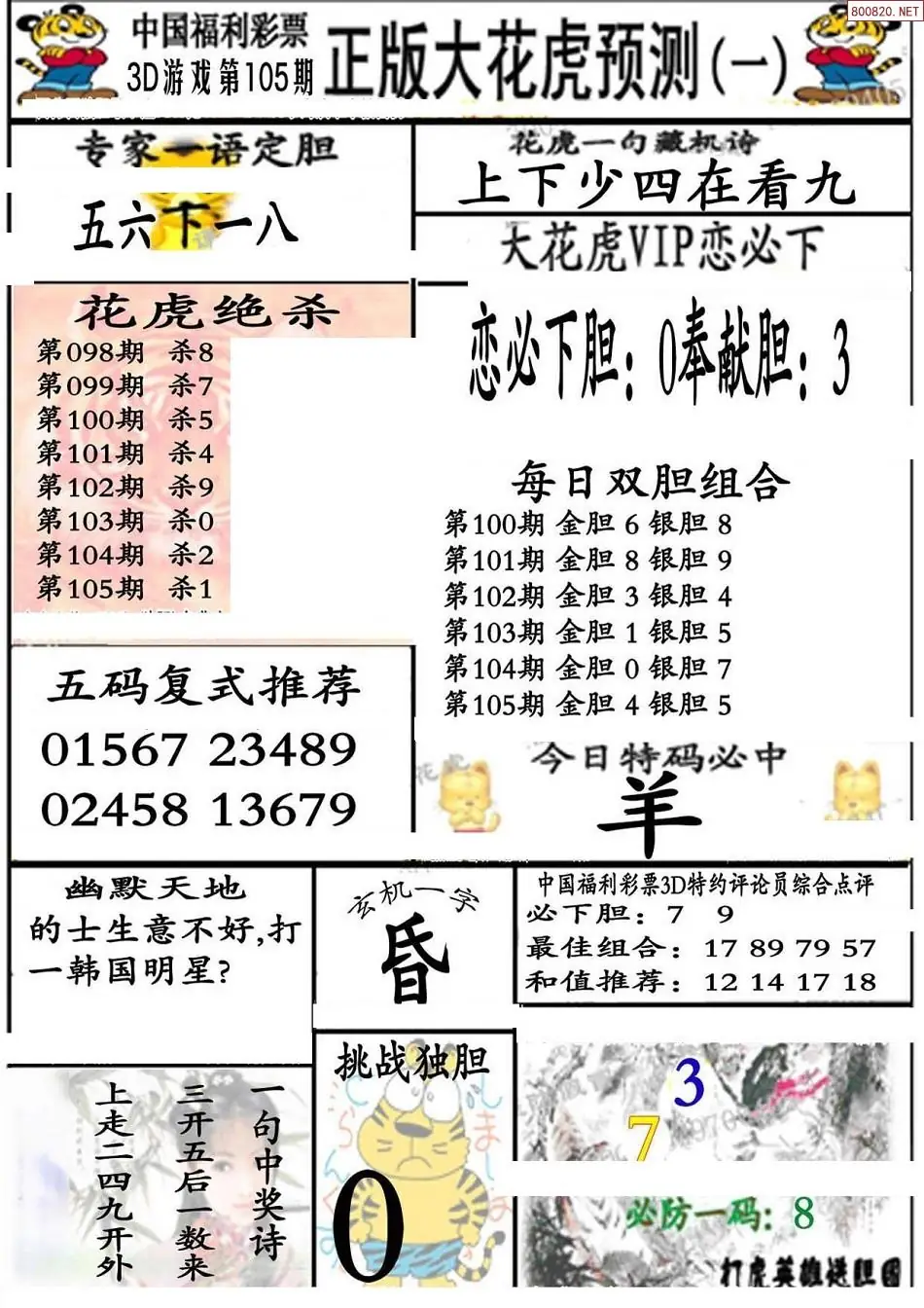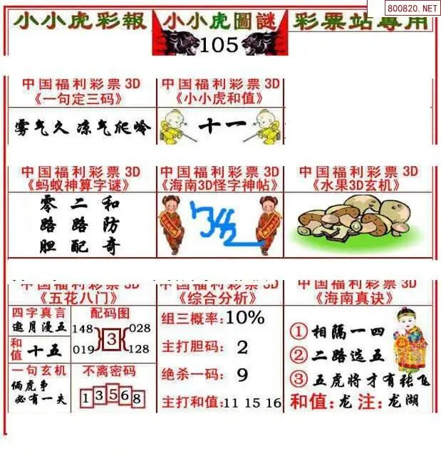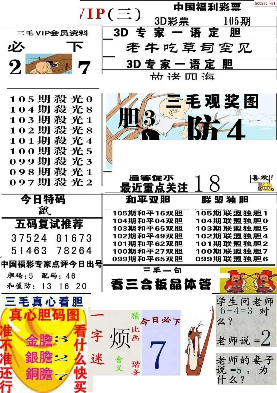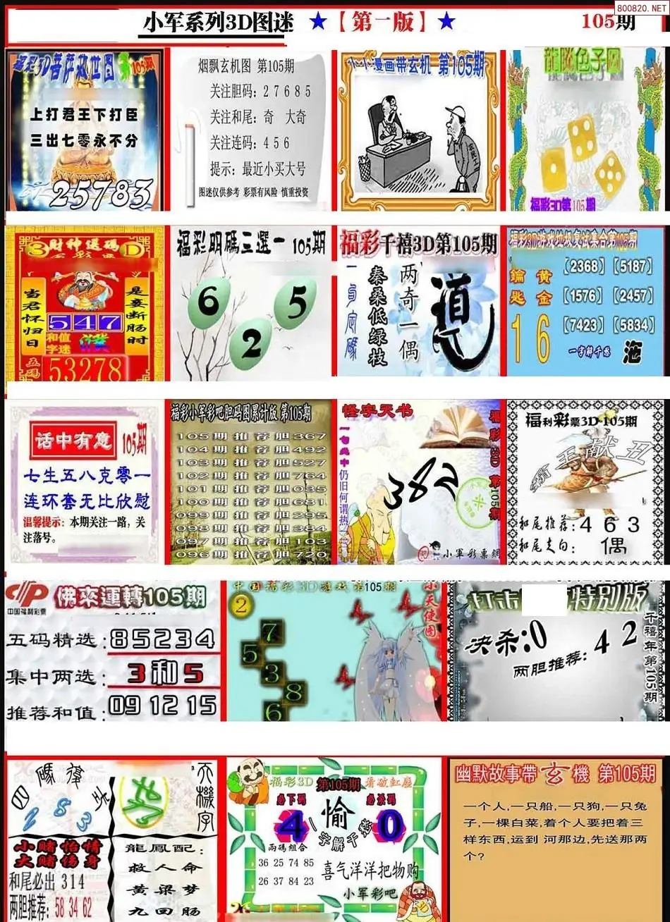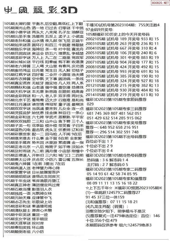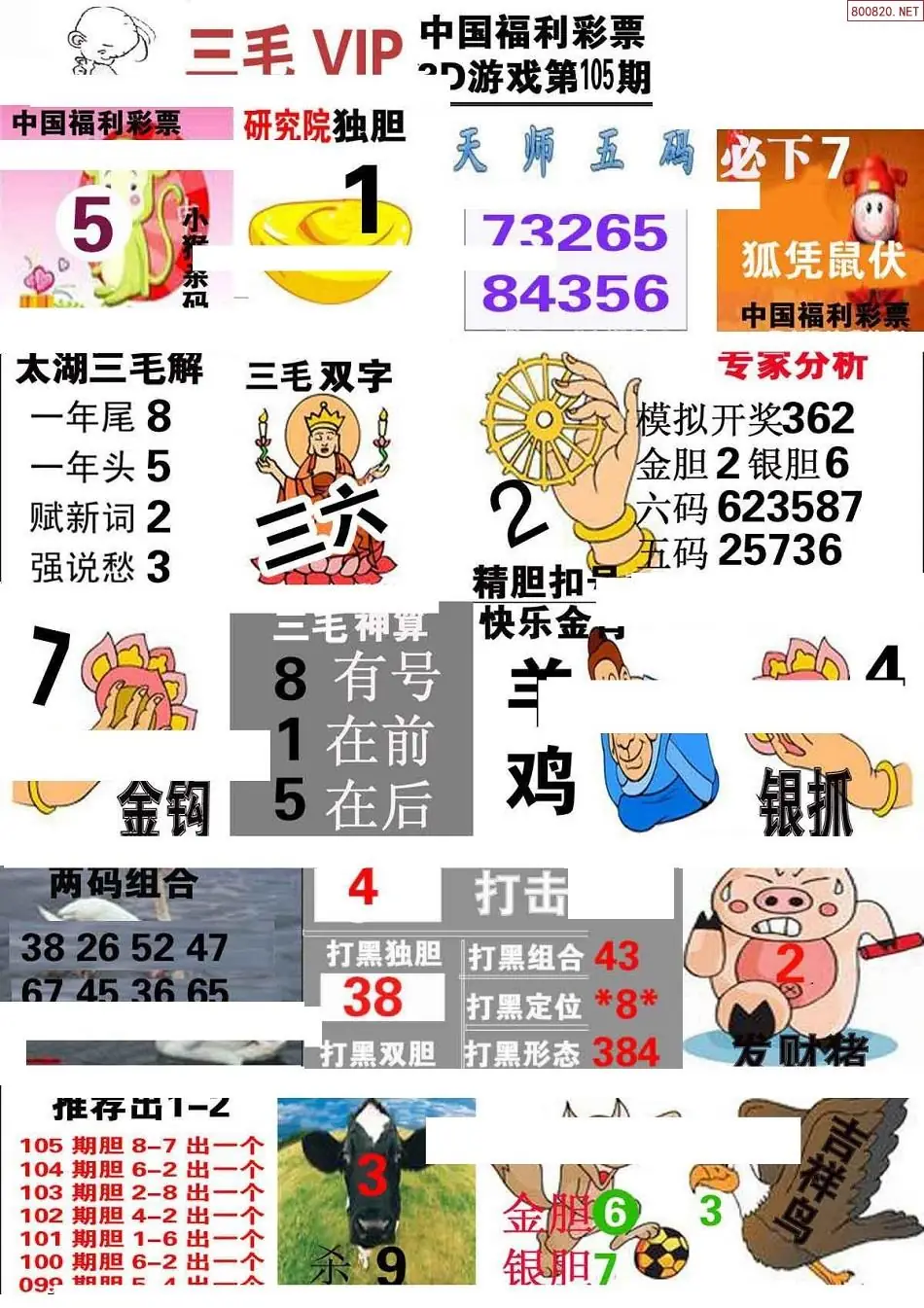 (3)2026105期3D预测总汇全图_福彩3d图谜字谜总汇