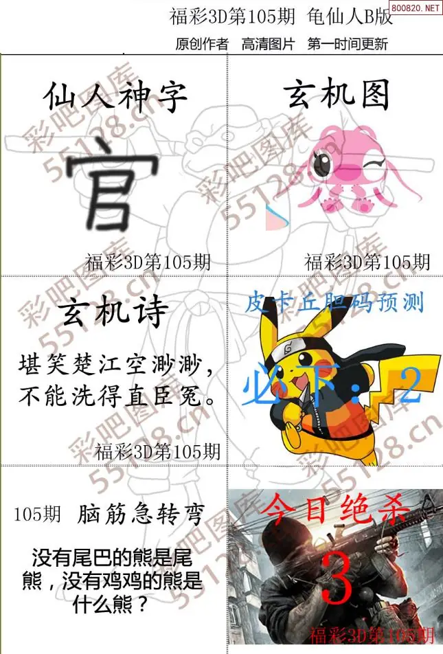 福彩3D105期天牛彩吧套图整合总汇