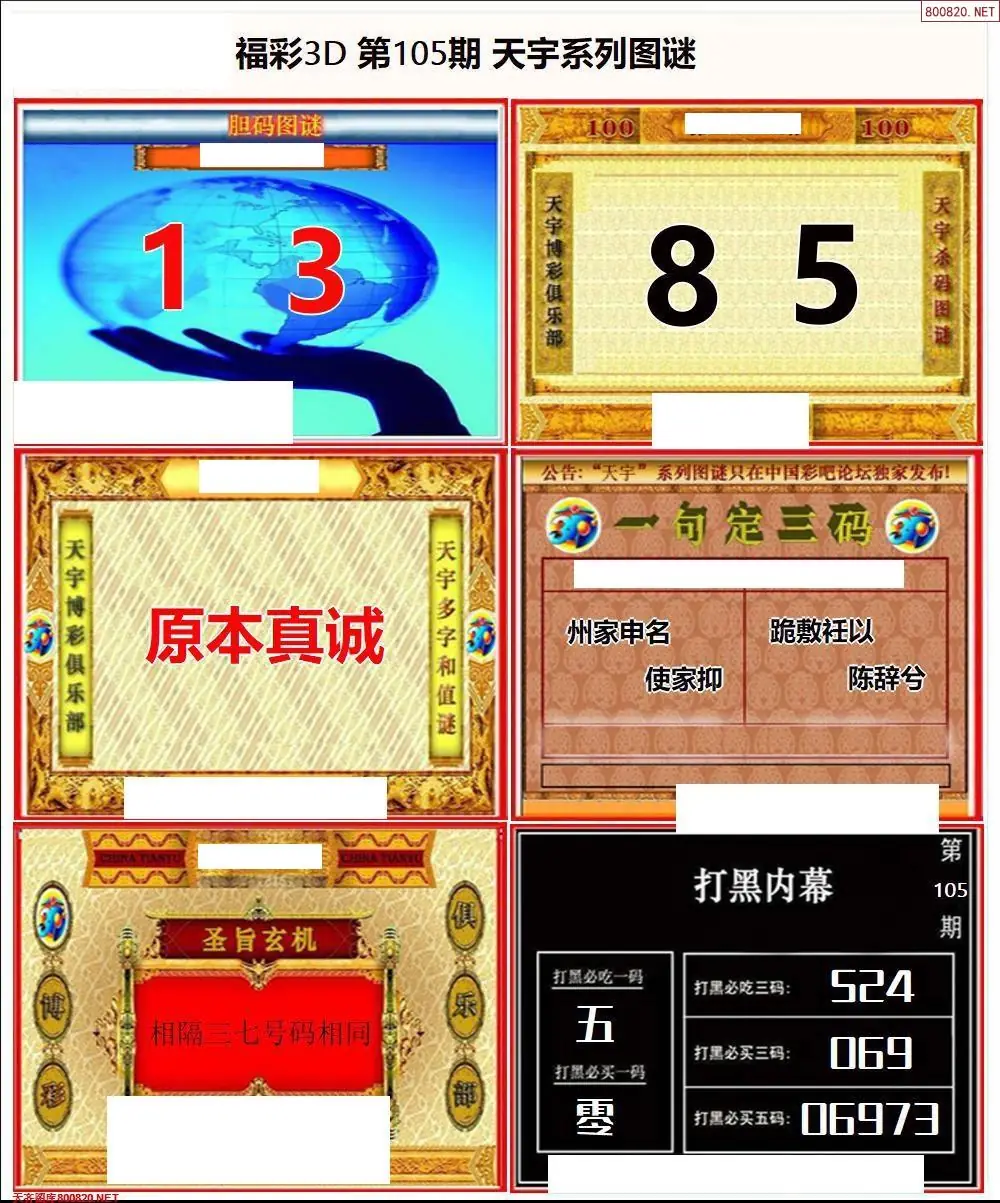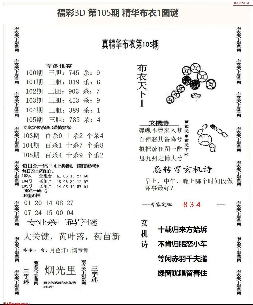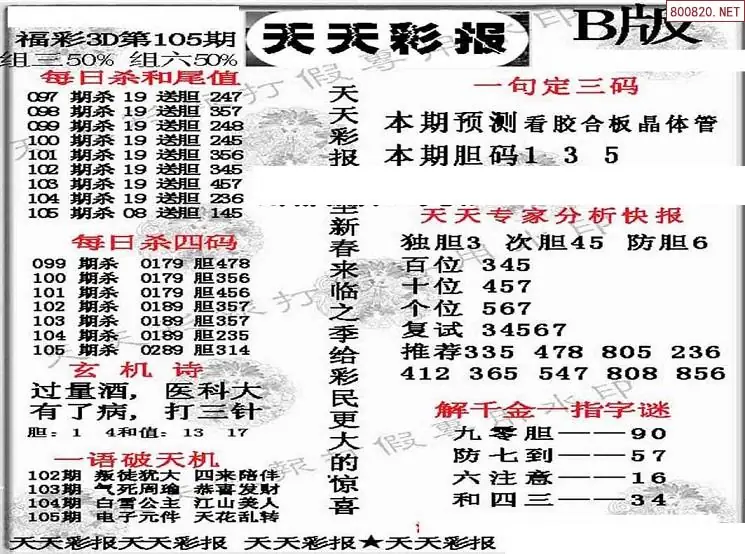 (2)26年105期本期3d图迷汇总_福彩3D图谜总汇图