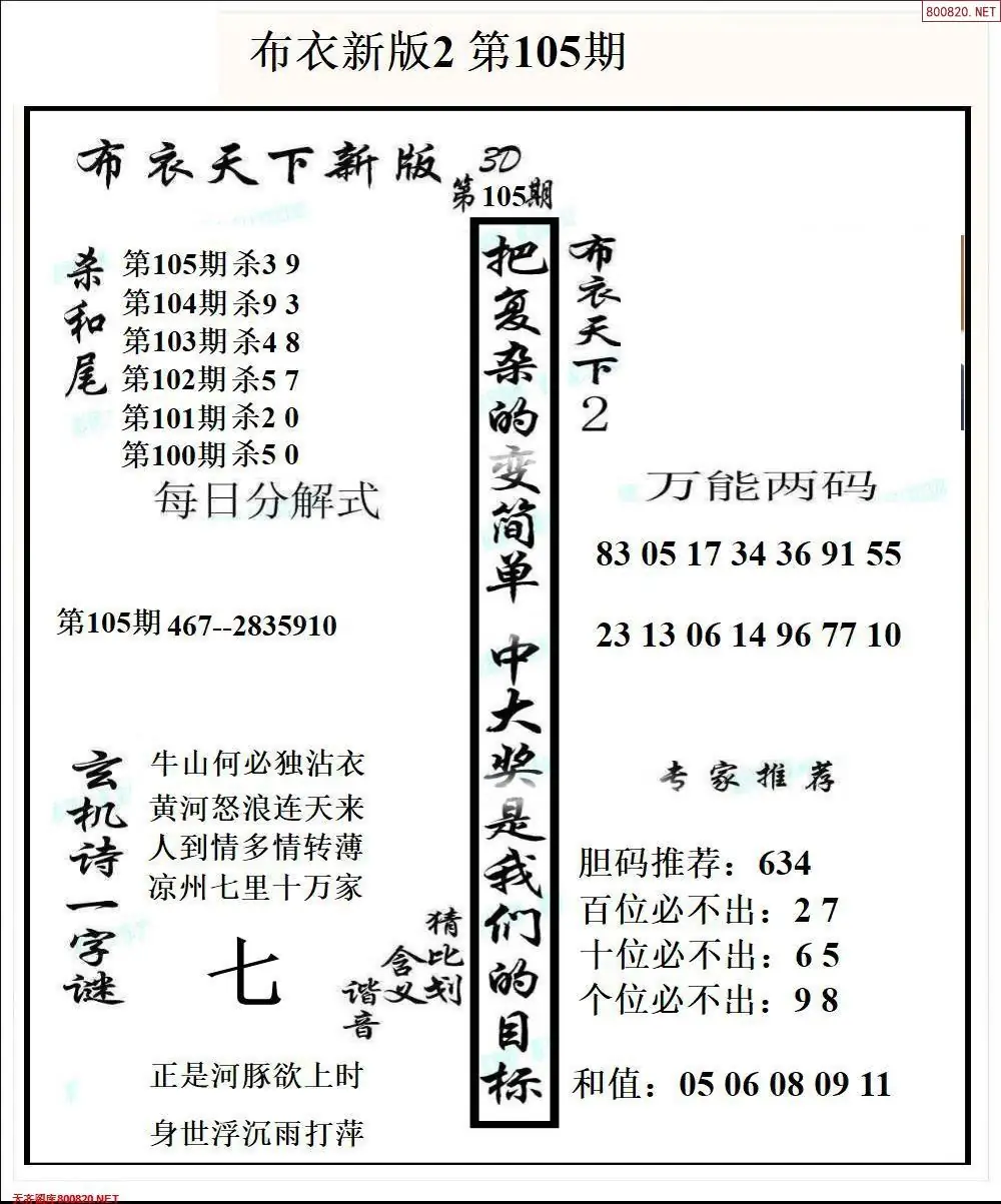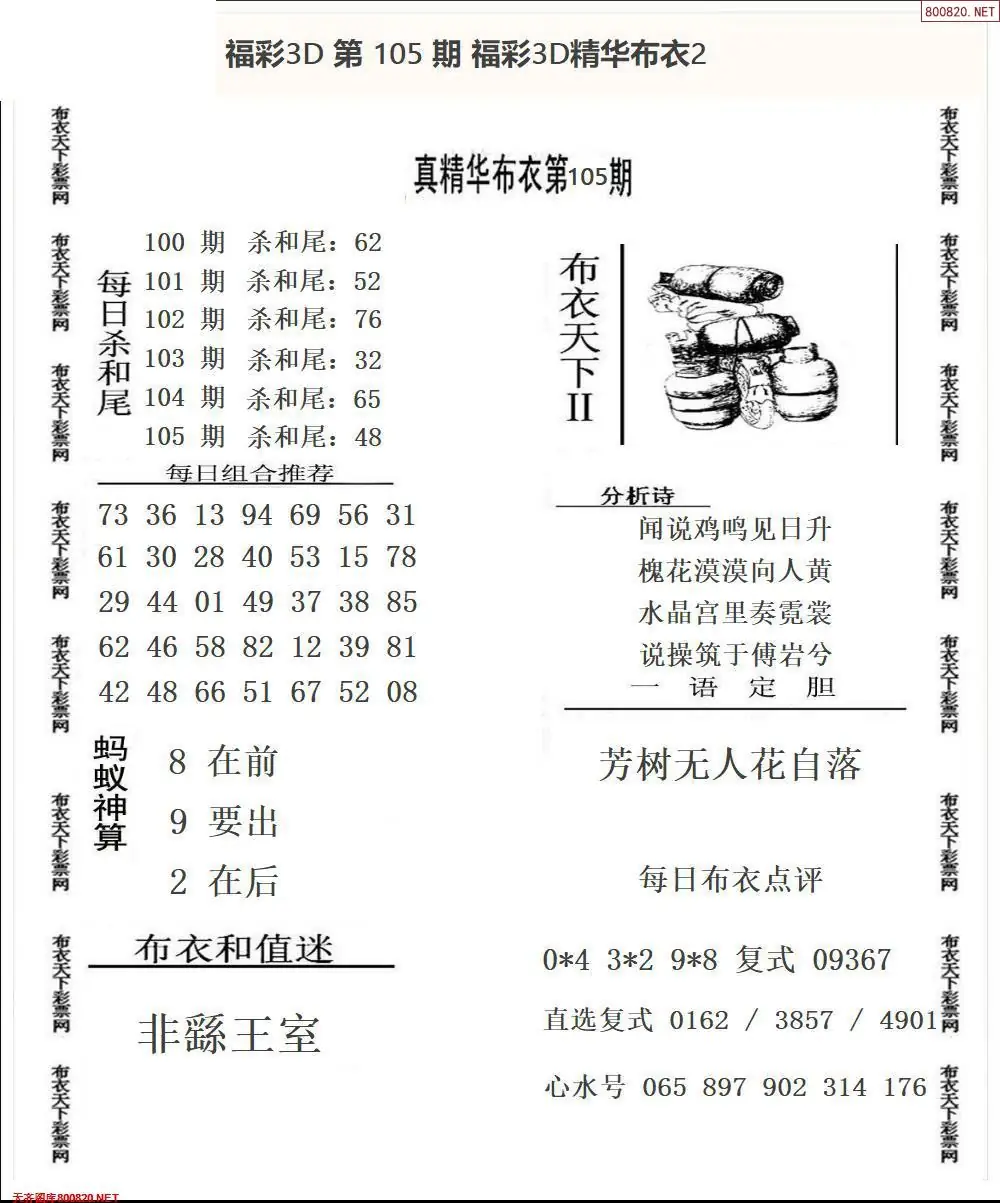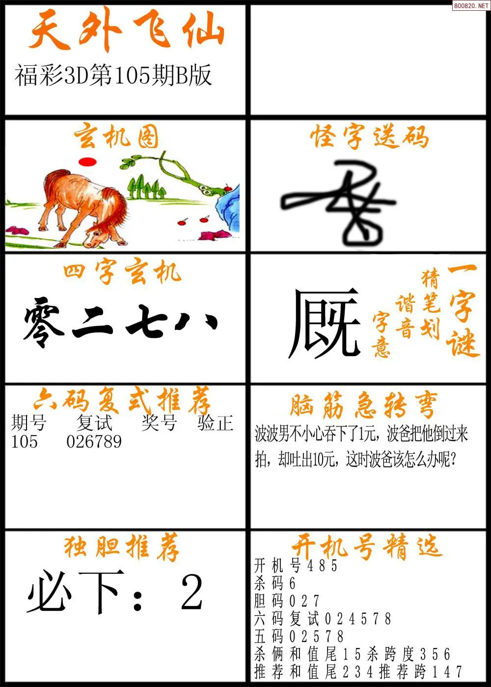 (2)26年105期本期3d图迷汇总_福彩3D图谜总汇图