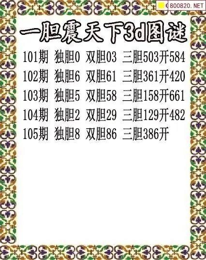 (3)2026104期3D预测总汇全图_福彩3d图谜字谜总汇